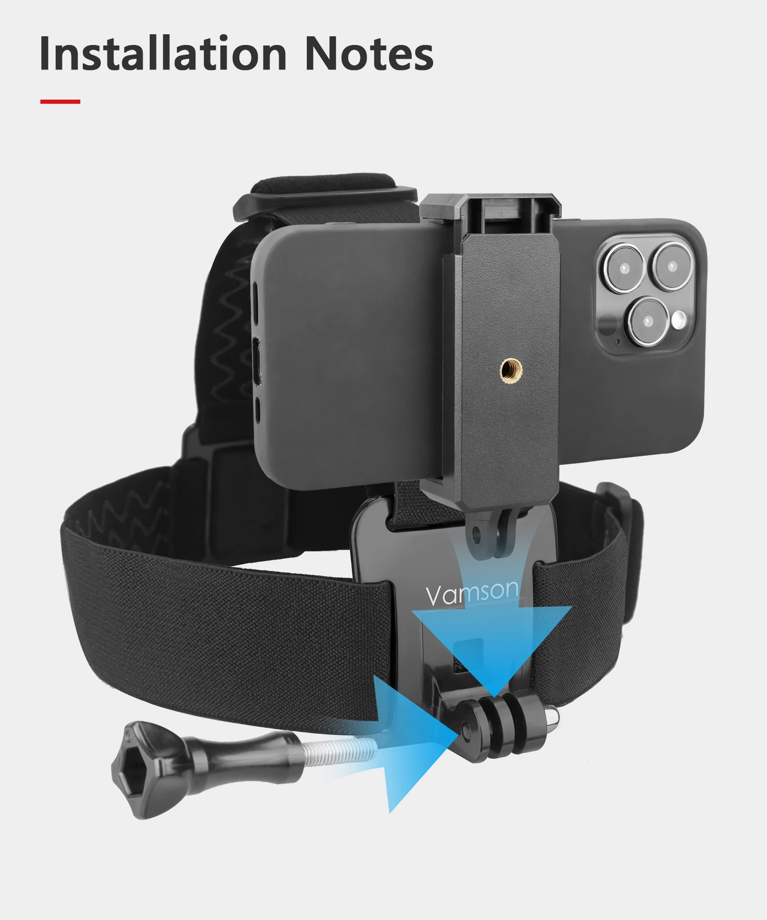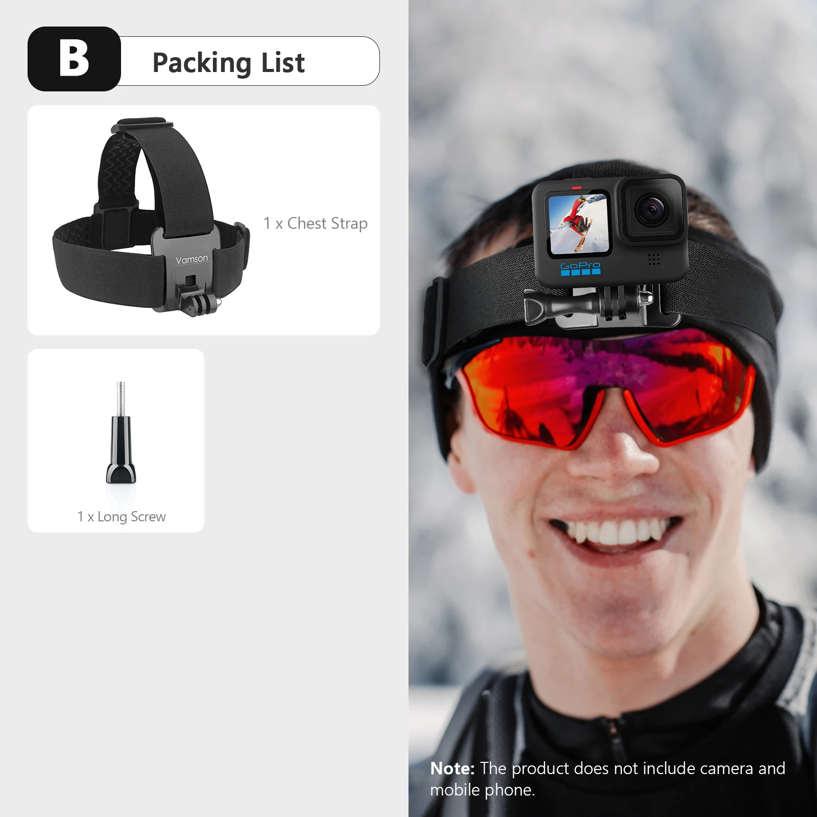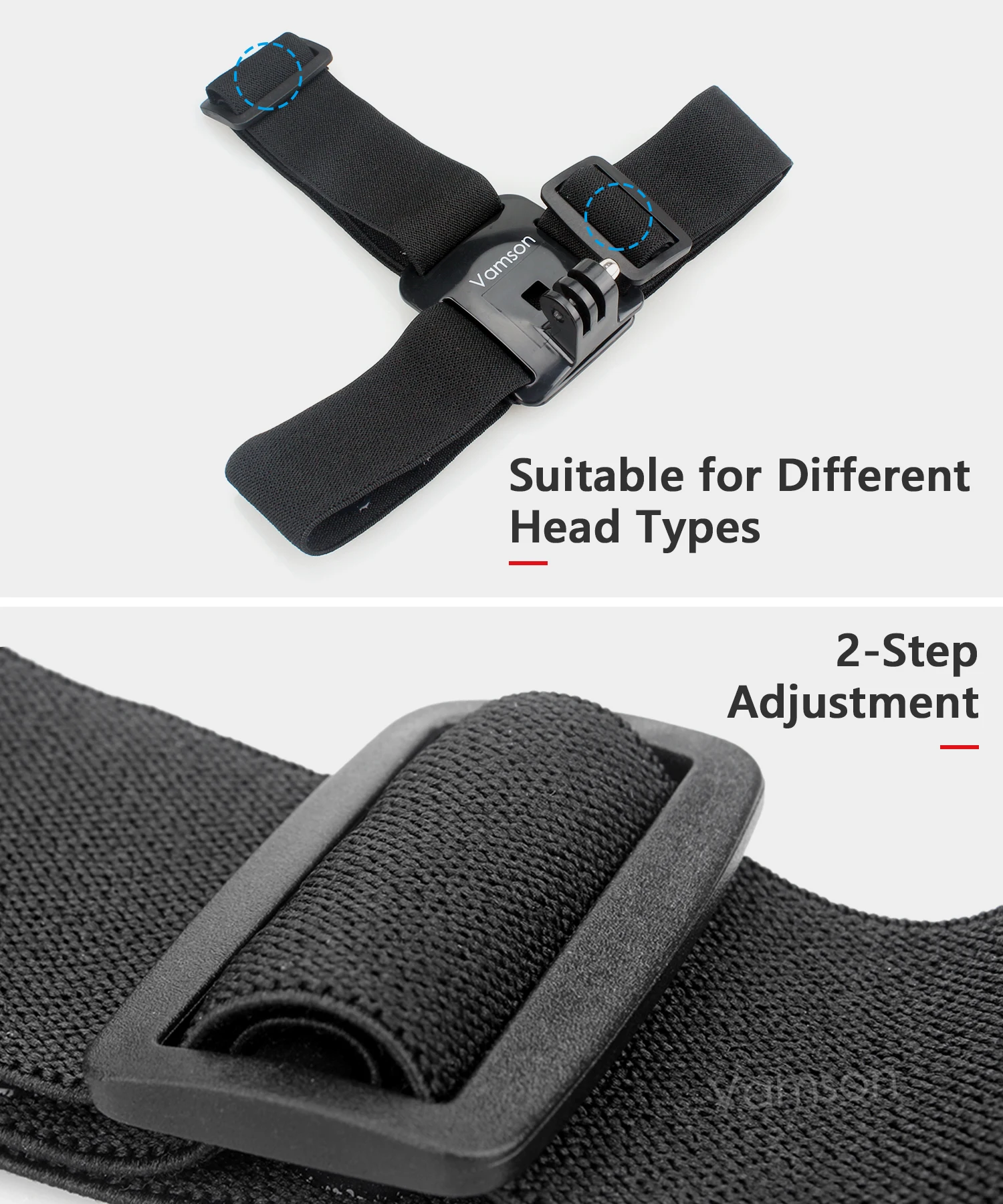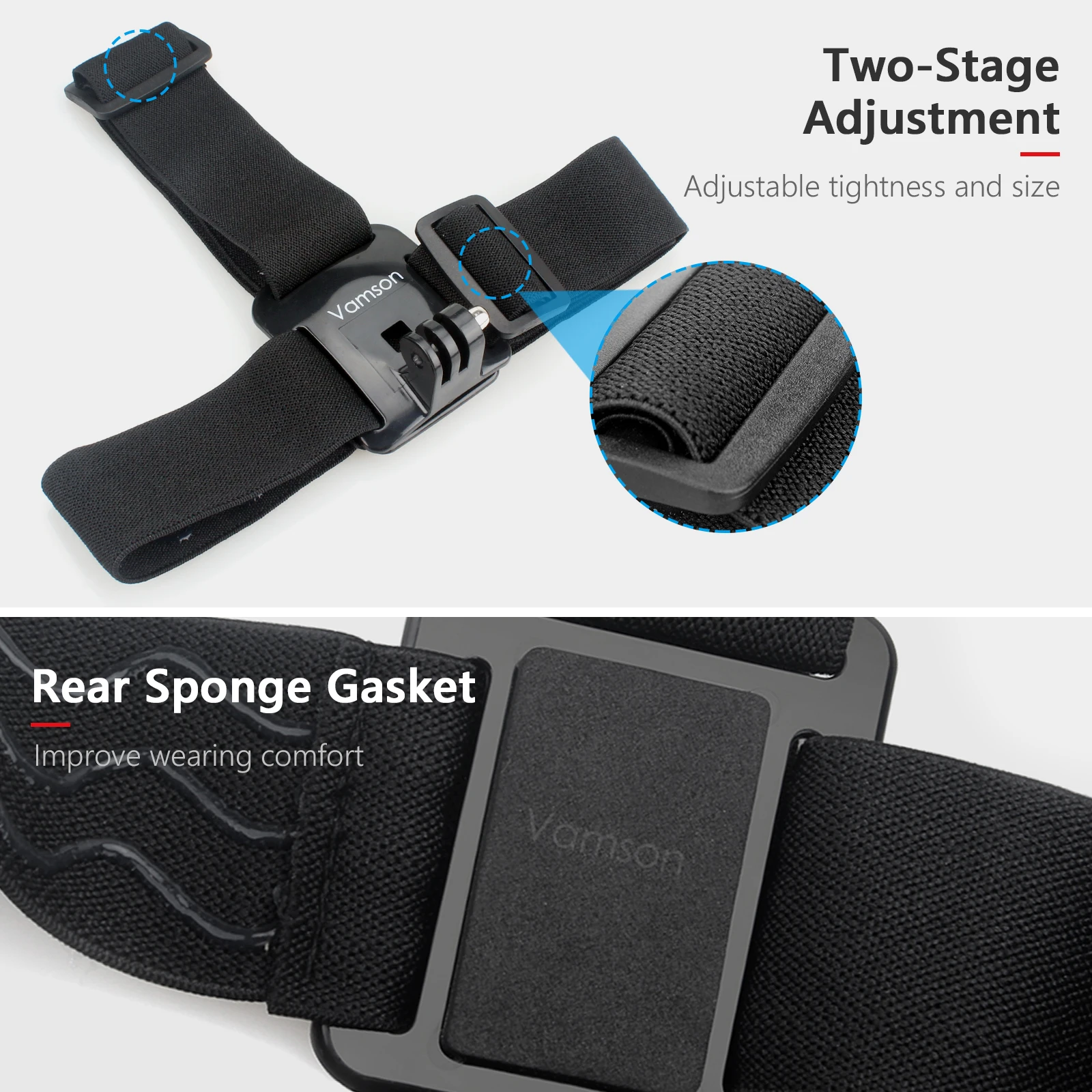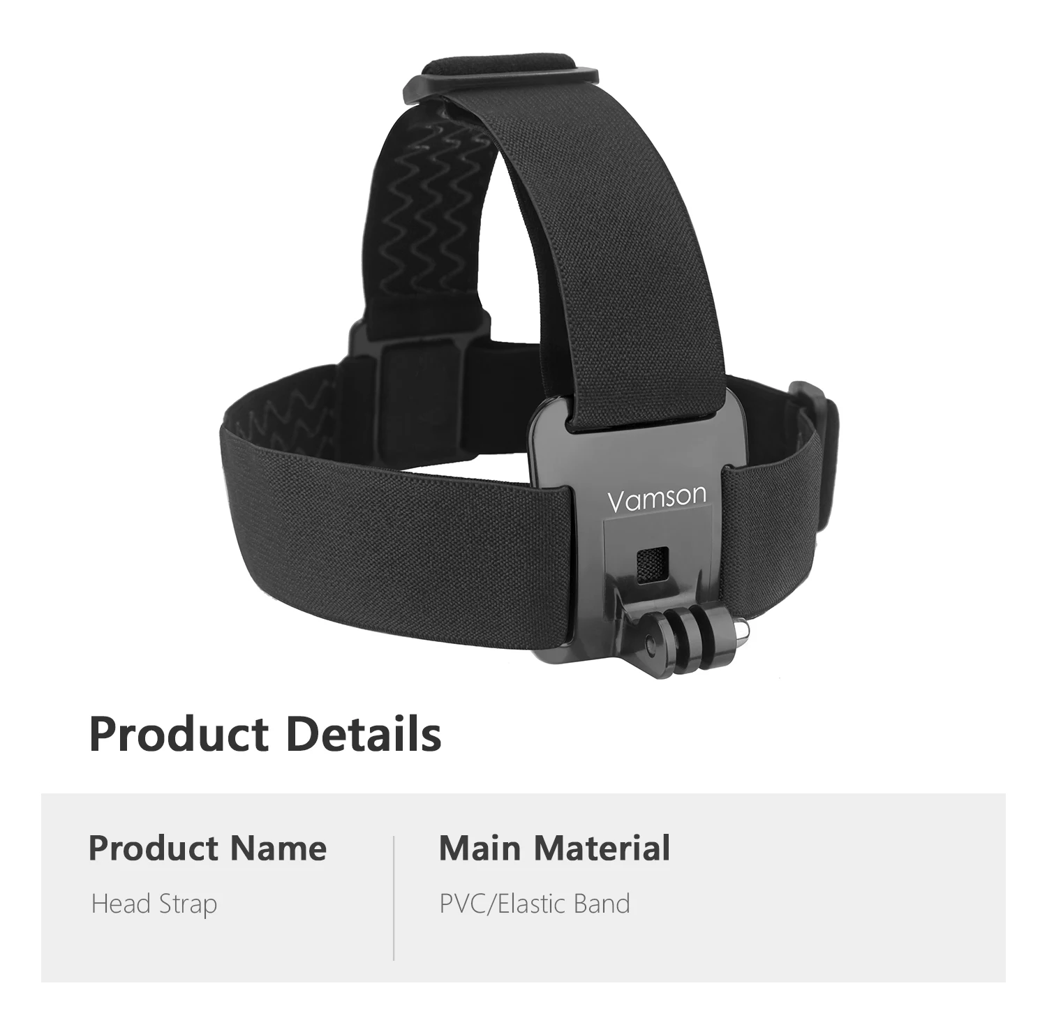حزام رأس Vamson لـ Gopro Hero 11 10 9 8 7 ملحقات حزام الرأس حزام جبل قابل للتعديل لـ Gopro Hero 7 6 5 4 لـ SJCAM VP202