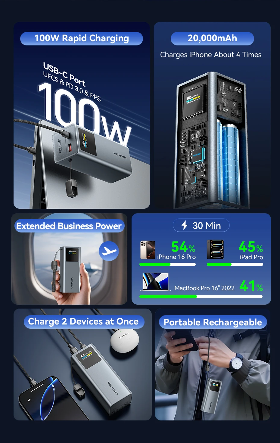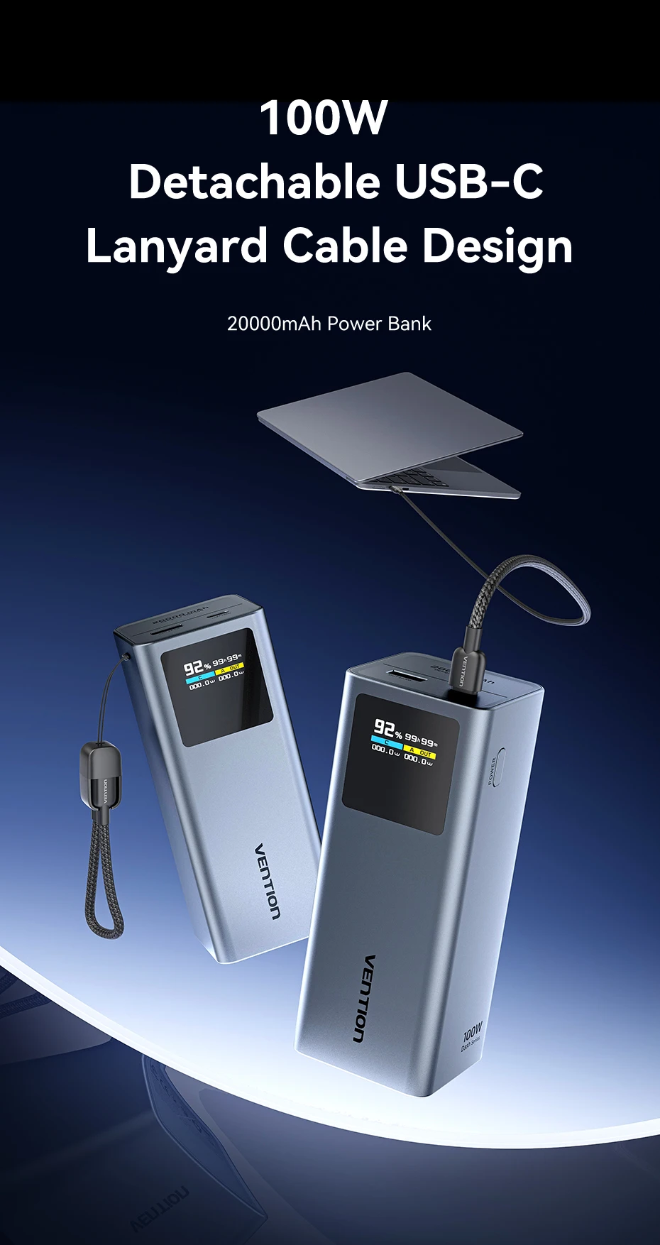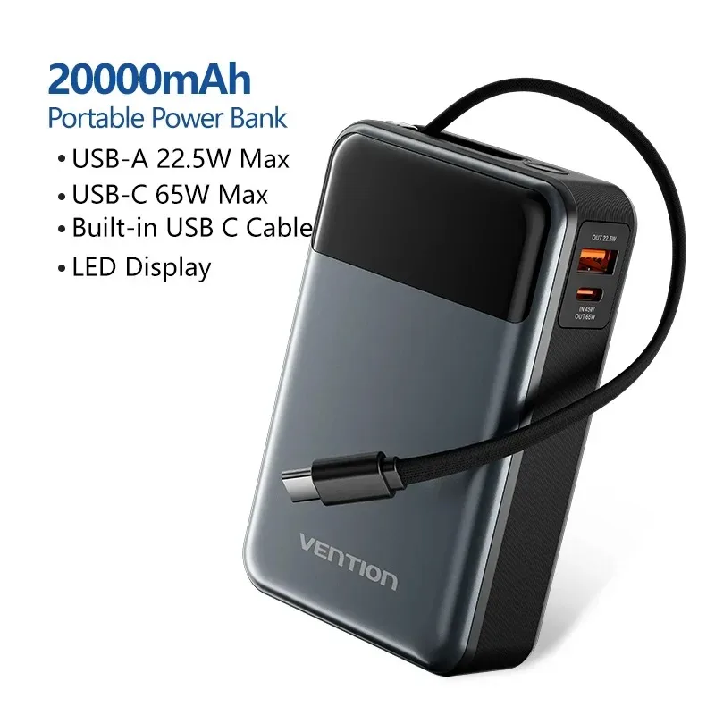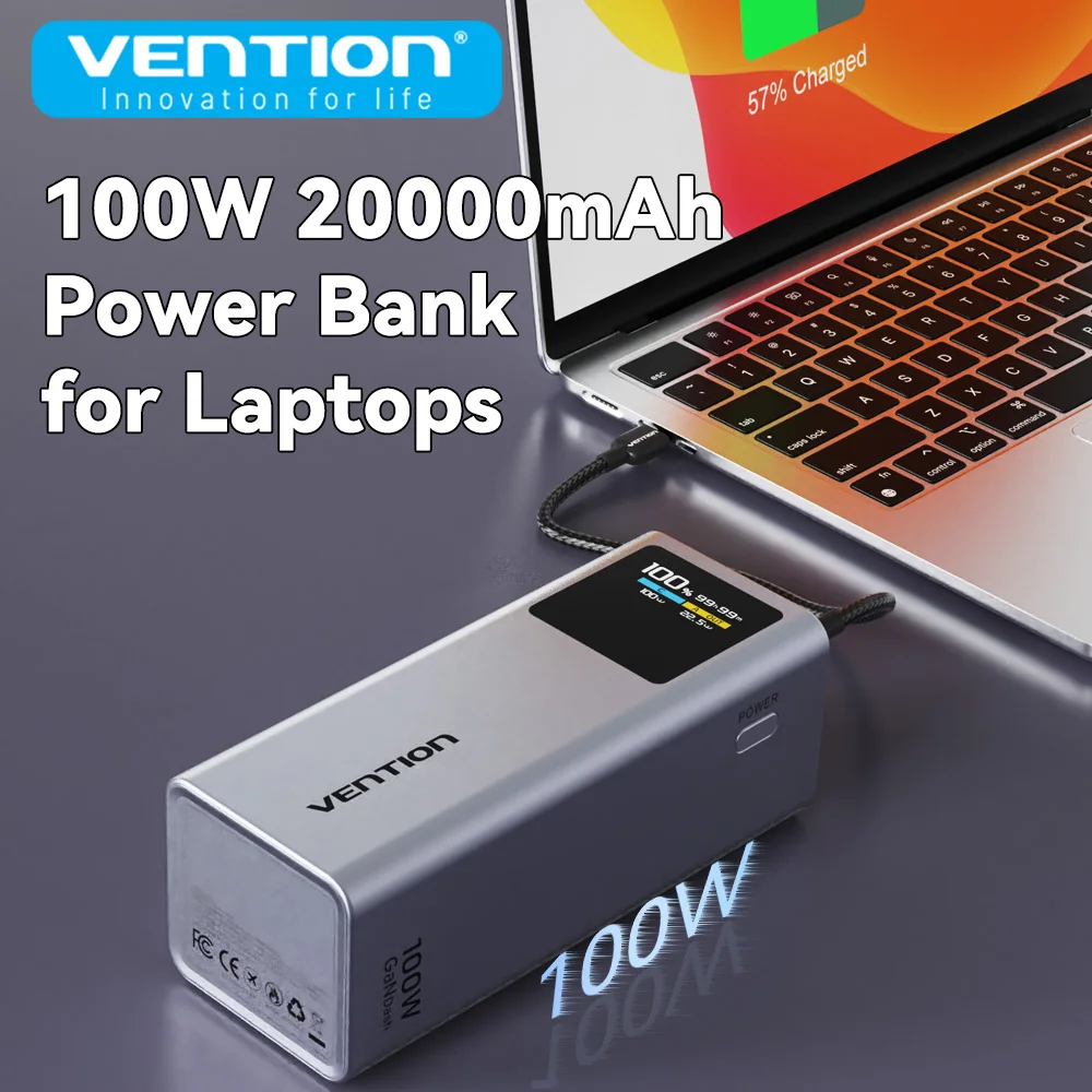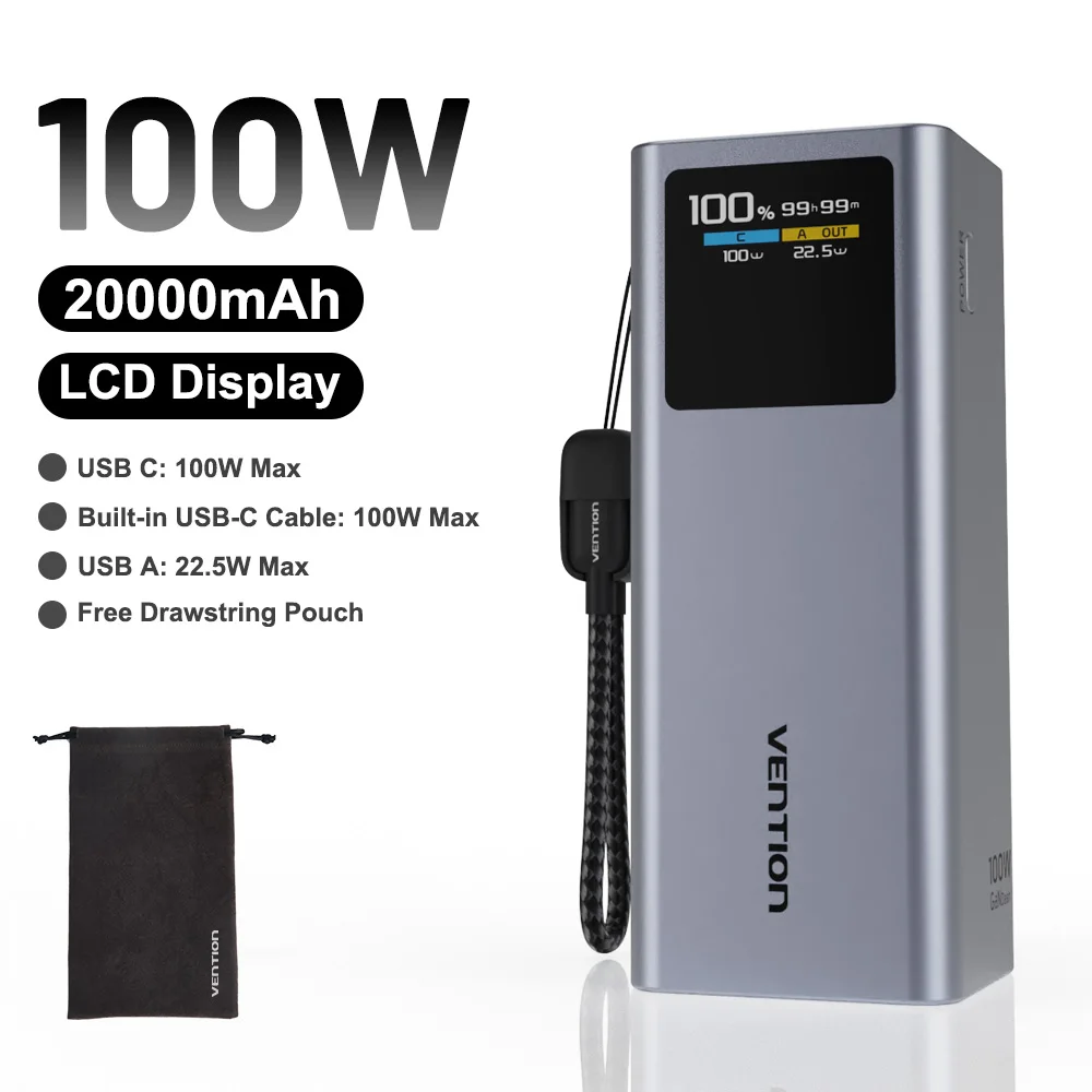 Vention 100 واط 20000 مللي أمبير بنك طاقة صغير محمول بطارية مساعدة خارجية لأجهزة سامسونج S25 PD شاحن سريع قوة البنك لأجهزة الكمبيوتر المحمولة