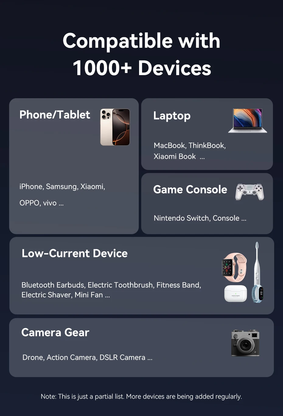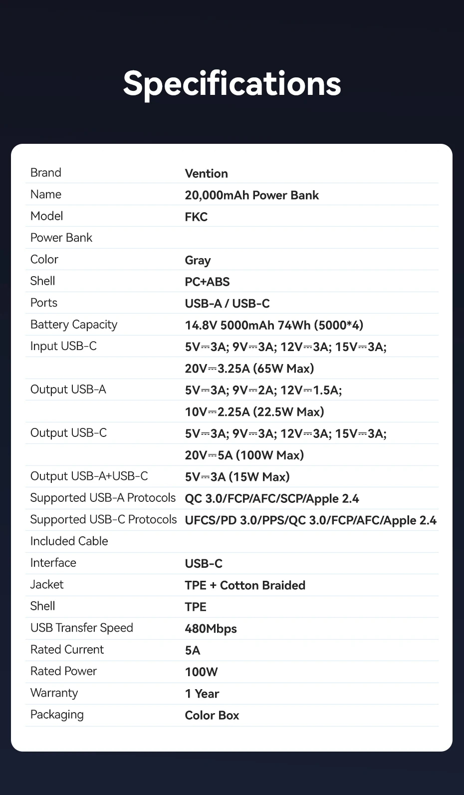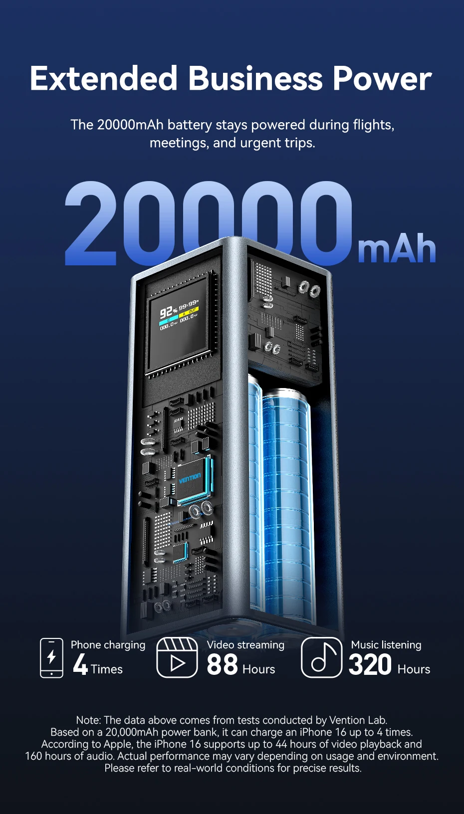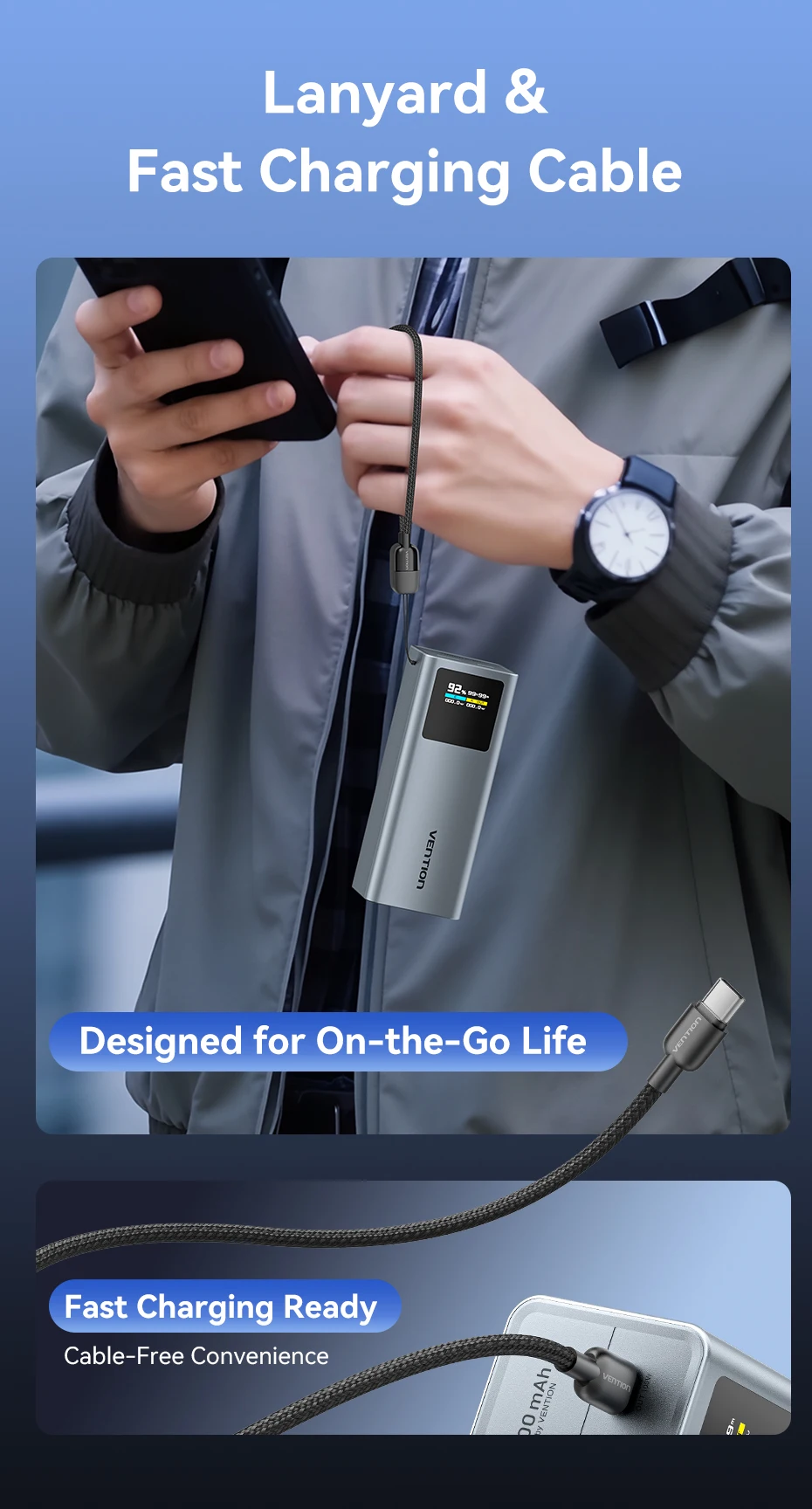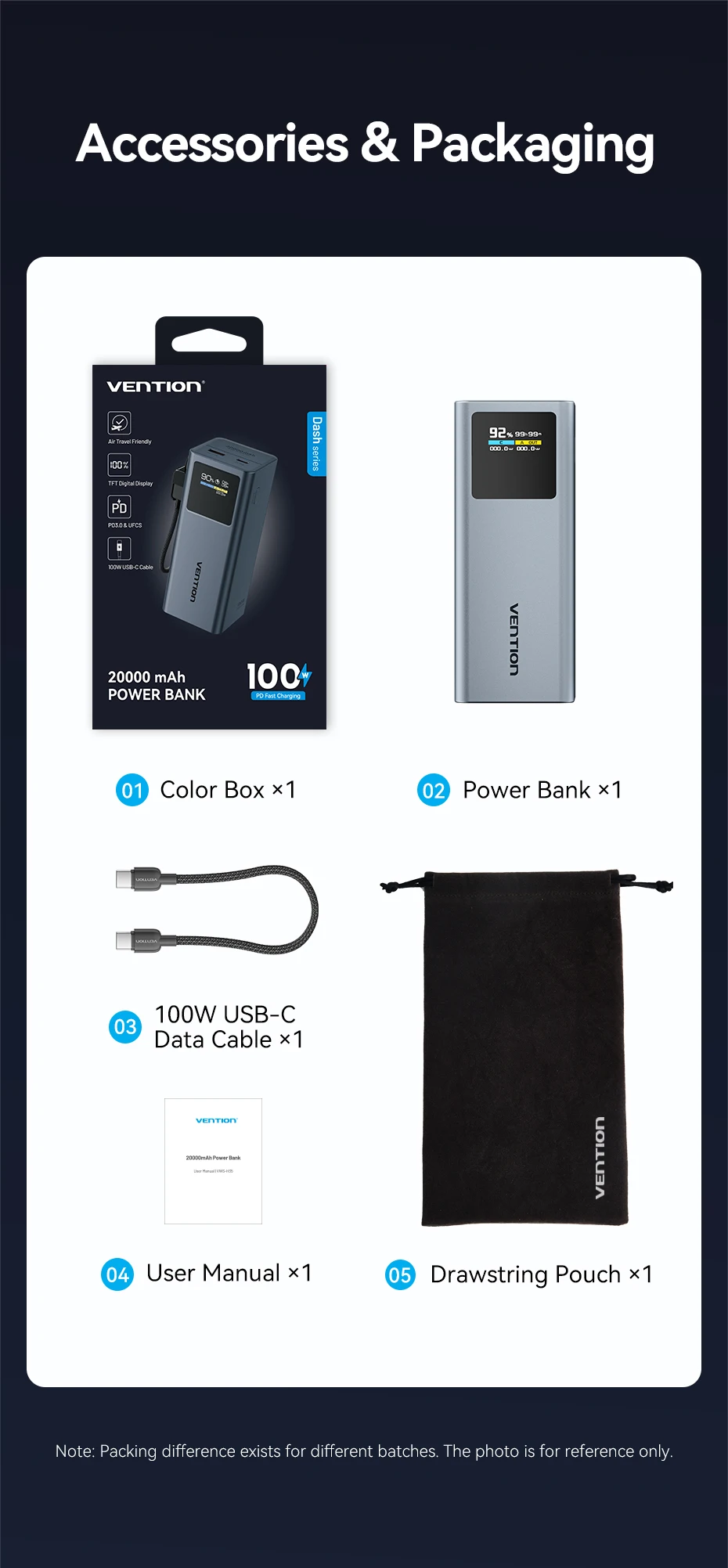 Vention 100 واط 20000 مللي أمبير بنك طاقة صغير محمول بطارية مساعدة خارجية لأجهزة سامسونج S25 PD شاحن سريع قوة البنك لأجهزة الكمبيوتر المحمولة