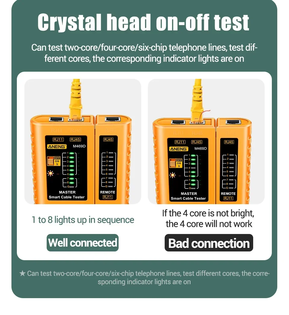 ANENG M469D RJ45 كابل اختبار الشبكة المحلية اختبار كابل الشبكة RJ45 RJ11 RJ12 CAT5 UTP كابل شبكة محلية اختبار الشبكات أداة إصلاح الش...