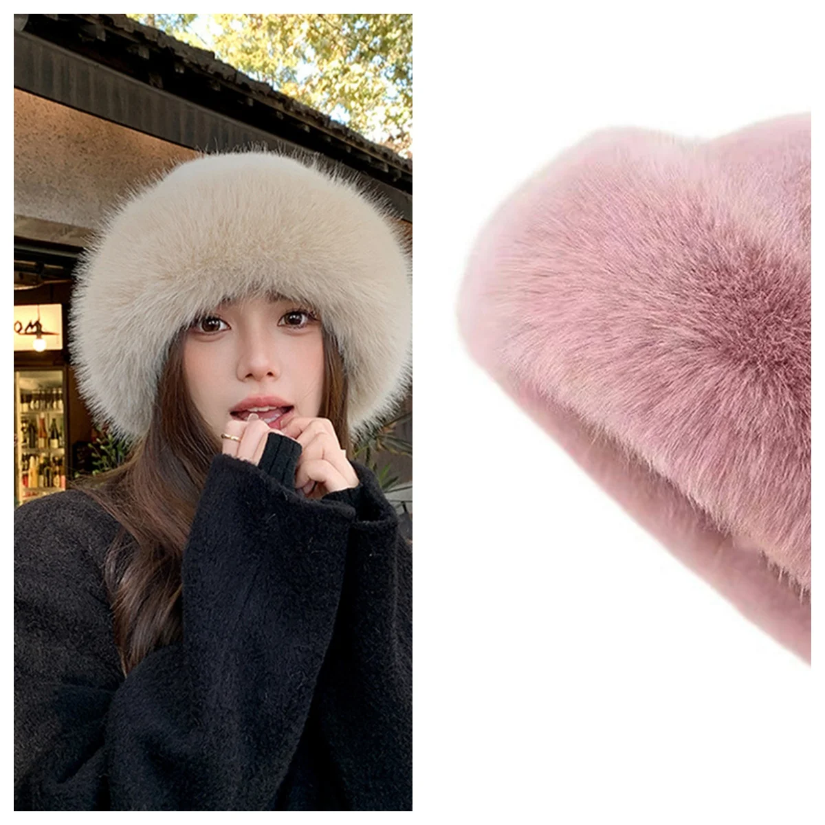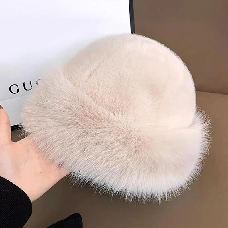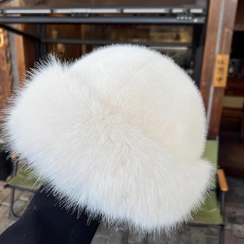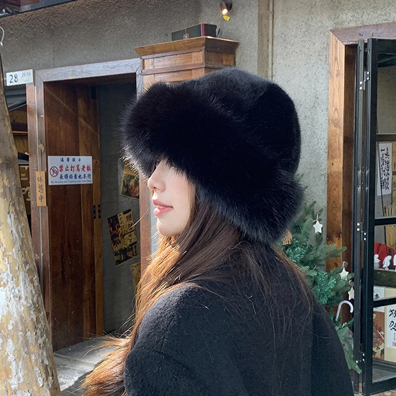 قبعة دلو نسائية سميكة من الفرو الصناعي المنفوش، قبعة صياد أنيقة من القطيفة لأيام الثلج الباردة