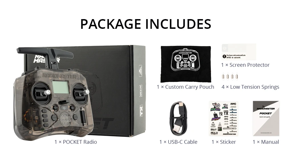 يعد RadioMaster Pocket خيارًا رائعًا للطيارين الذين يبحثون عن راديو صغير وخفيف الوزن مزودًا بجميع الميزات القوية التي تتوقعها.