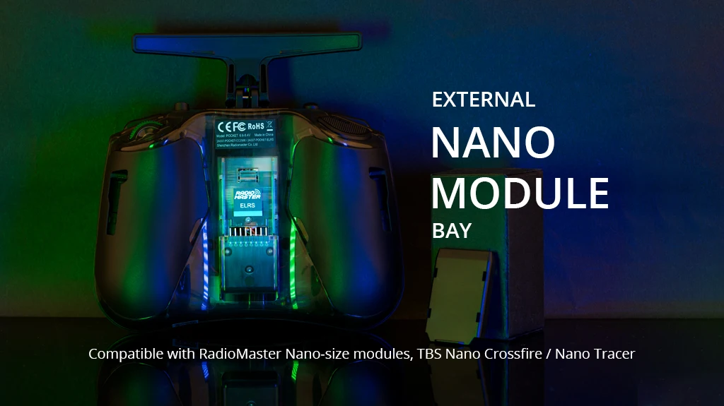 خليج الوحدة الخارجية متوافق مع وحدات RadioMaster Nano-size وTBS Nano Crossfire/Nano Tracer