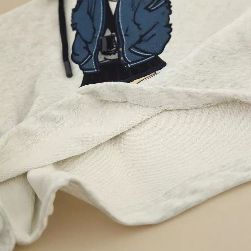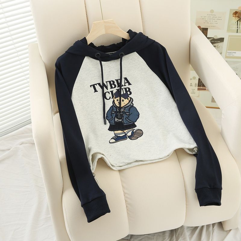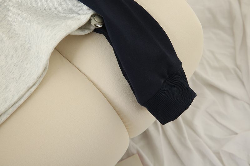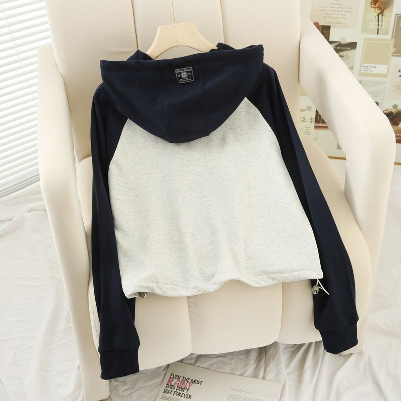 ملابس نسائية لخريف وشتاء جديد بنمط كلية نسائية، سويت شيرت بقبة تباين في الألوان مع أكمام راغلان.