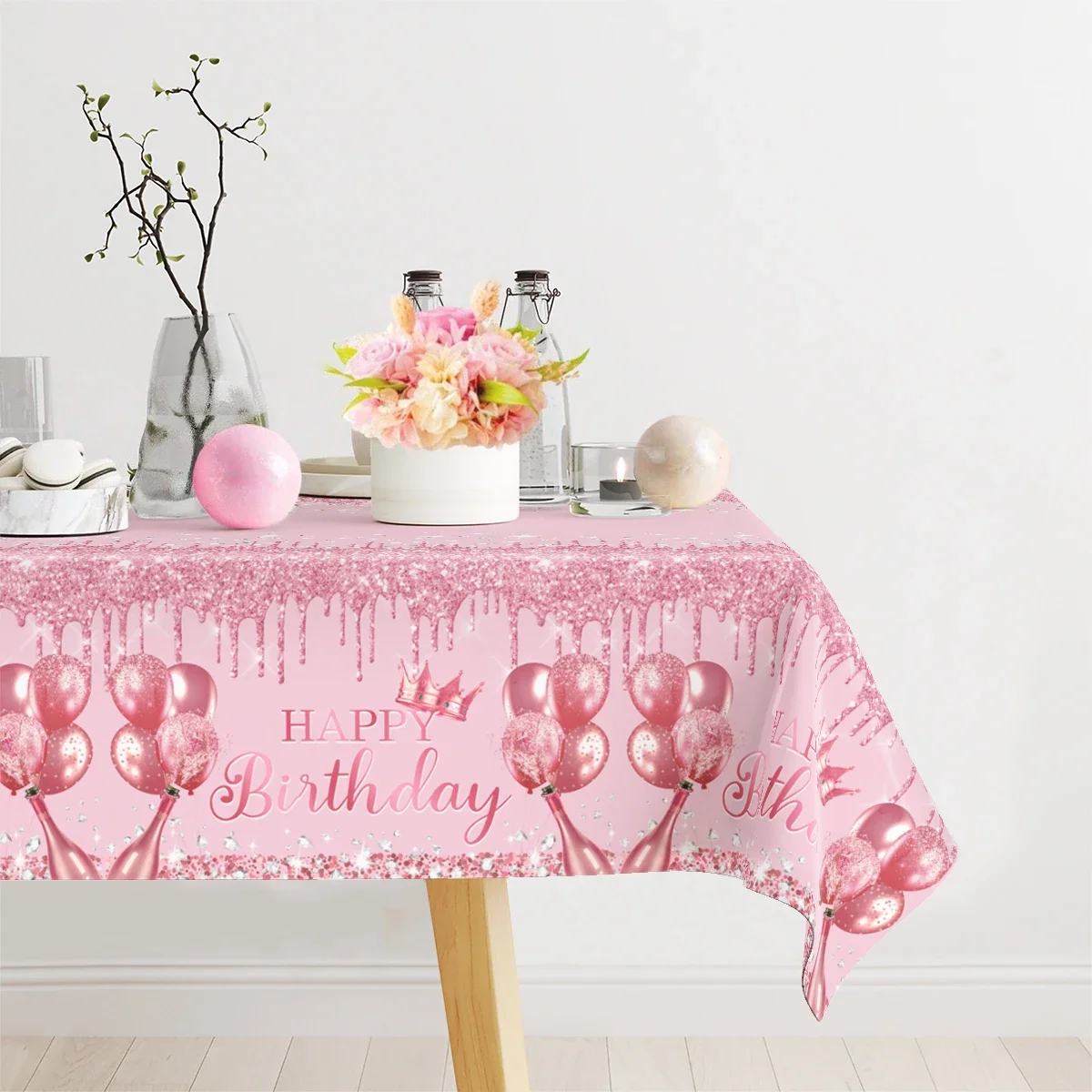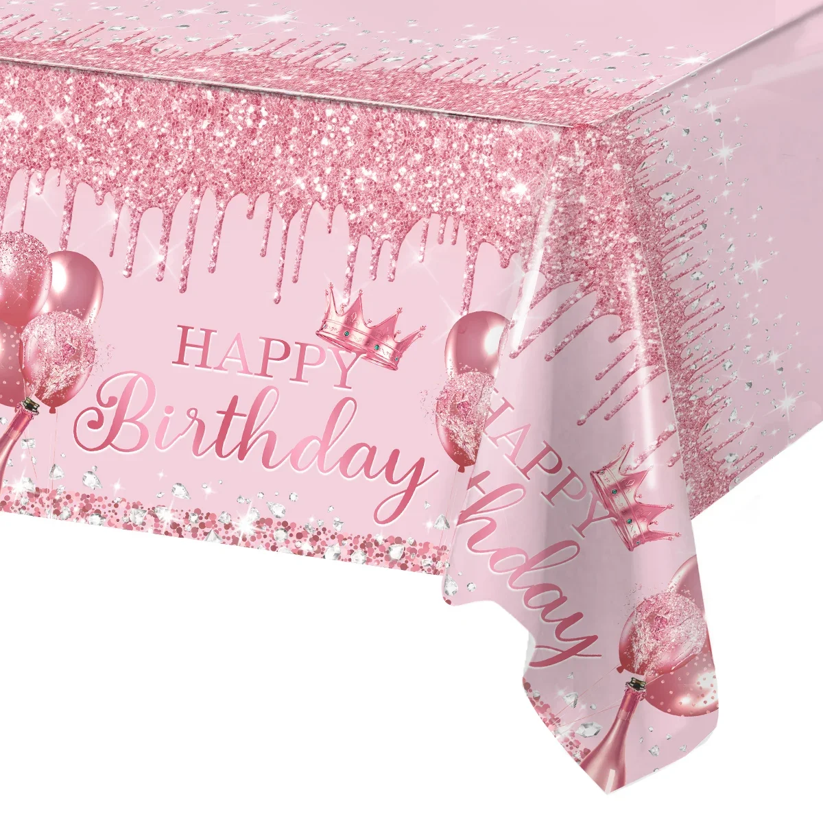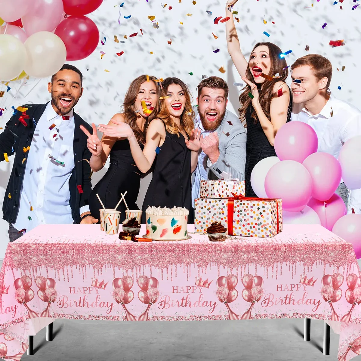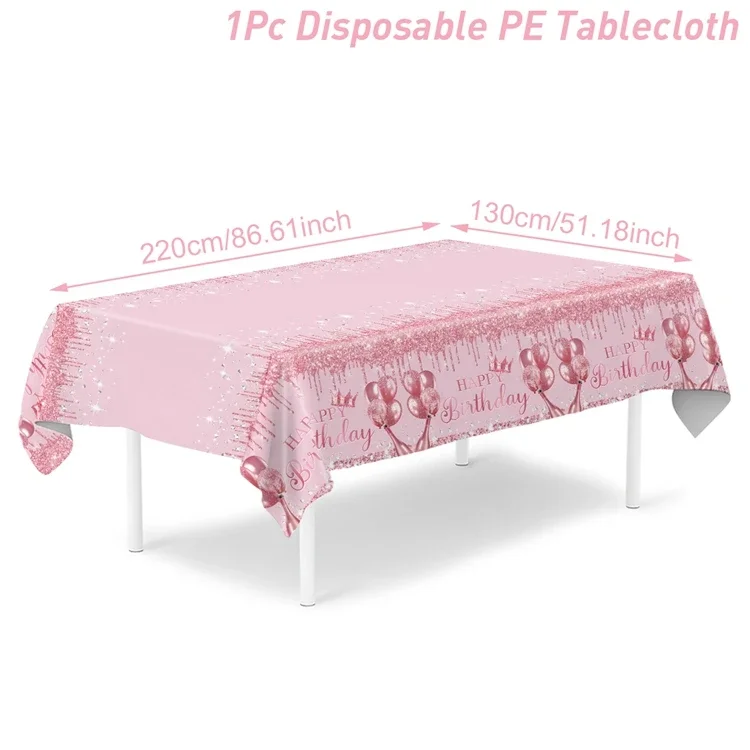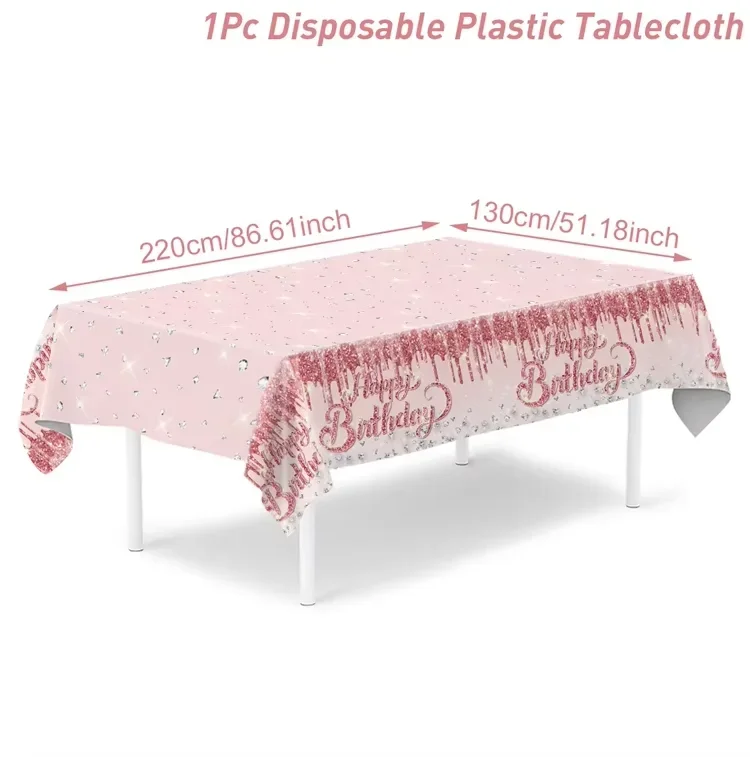 لوازم تزيين الحفلات باللون الوردي والذهبي الوردي، مفرش طاولة للاستعمال مرة واحدة، غطاء طاولة لحفلات أعياد الميلاد وحفلات أعياد الميلاد وحفلات استقبال المولود الجديد