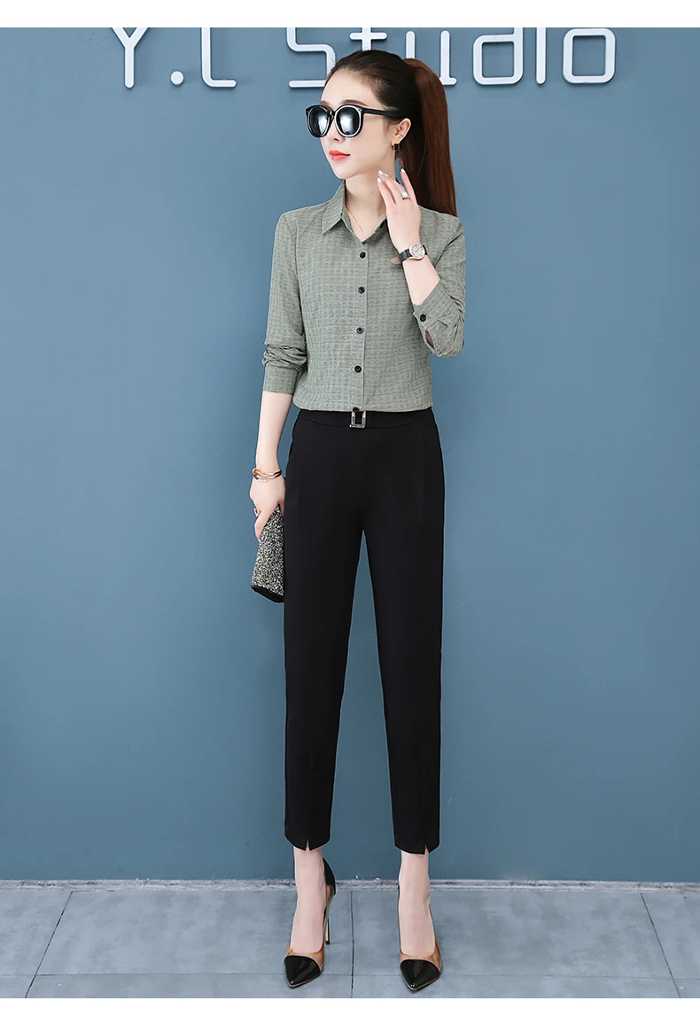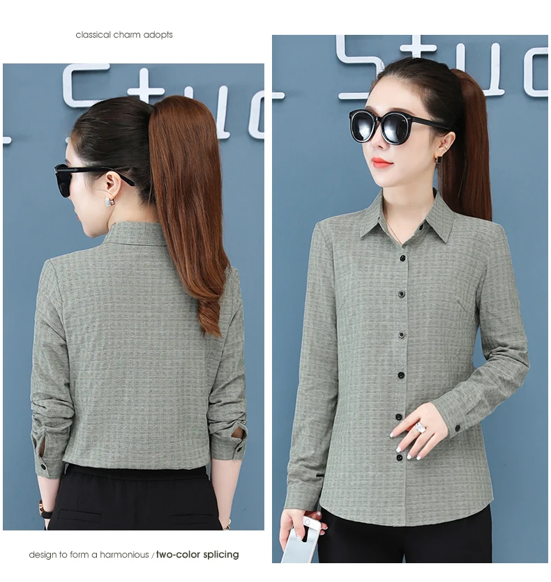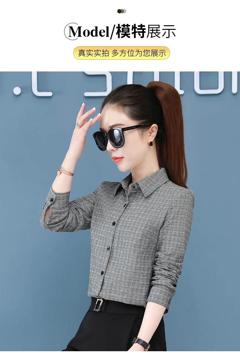 قميص نسائي بأكمام طويلة ، بلوزة كاجوال متعددة الاستخدامات ، قطن خالص ، بياقة قابلة للطي ، موضة كورية ، جديدة ، للربيع والخريف
