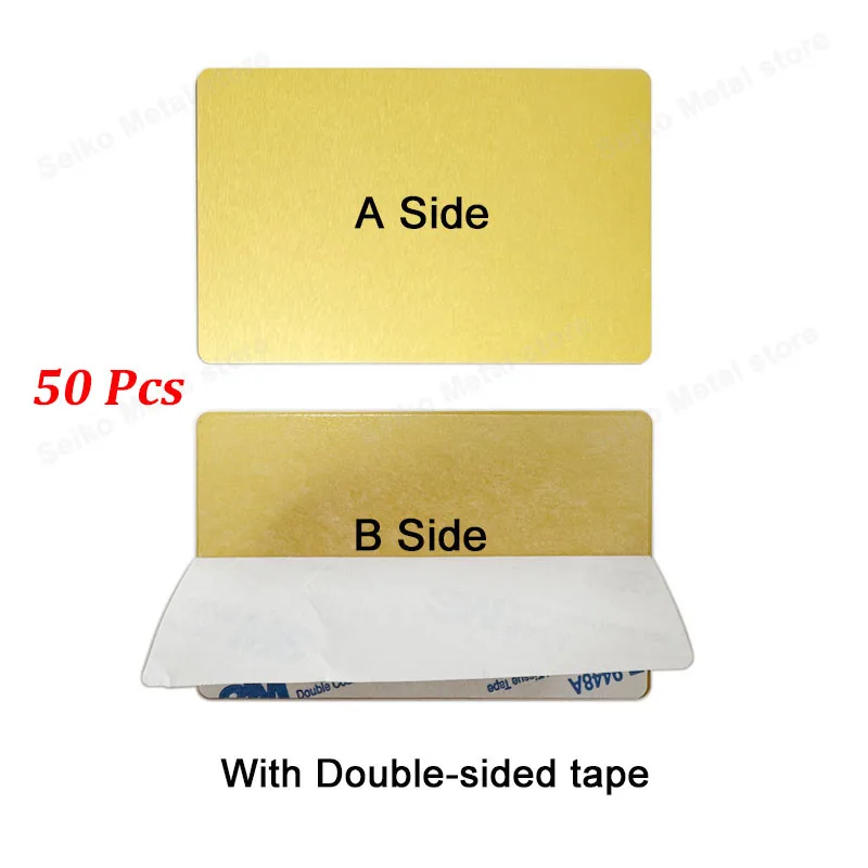 50 قطعة مع بطاقة عمل معدنية لاصقة لمسة نهائية ملونة من الألومنيوم فارغة بطاقات النقش بالليزر شعار الطباعة لتقوم بها بنفسك اللوازم المكتبية