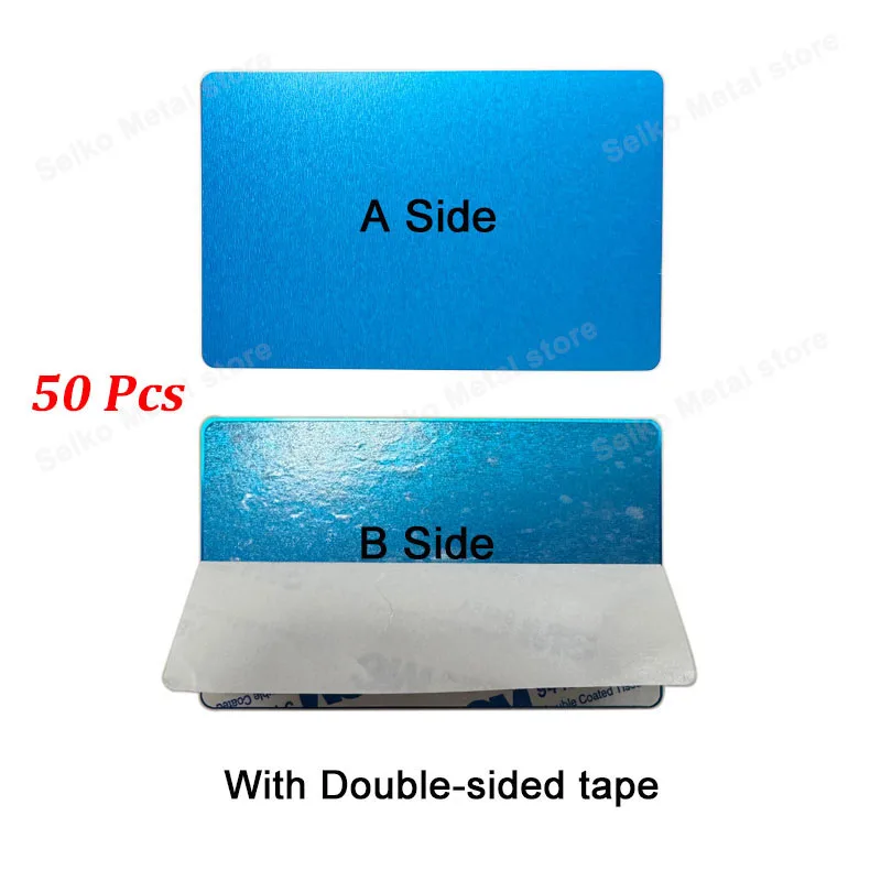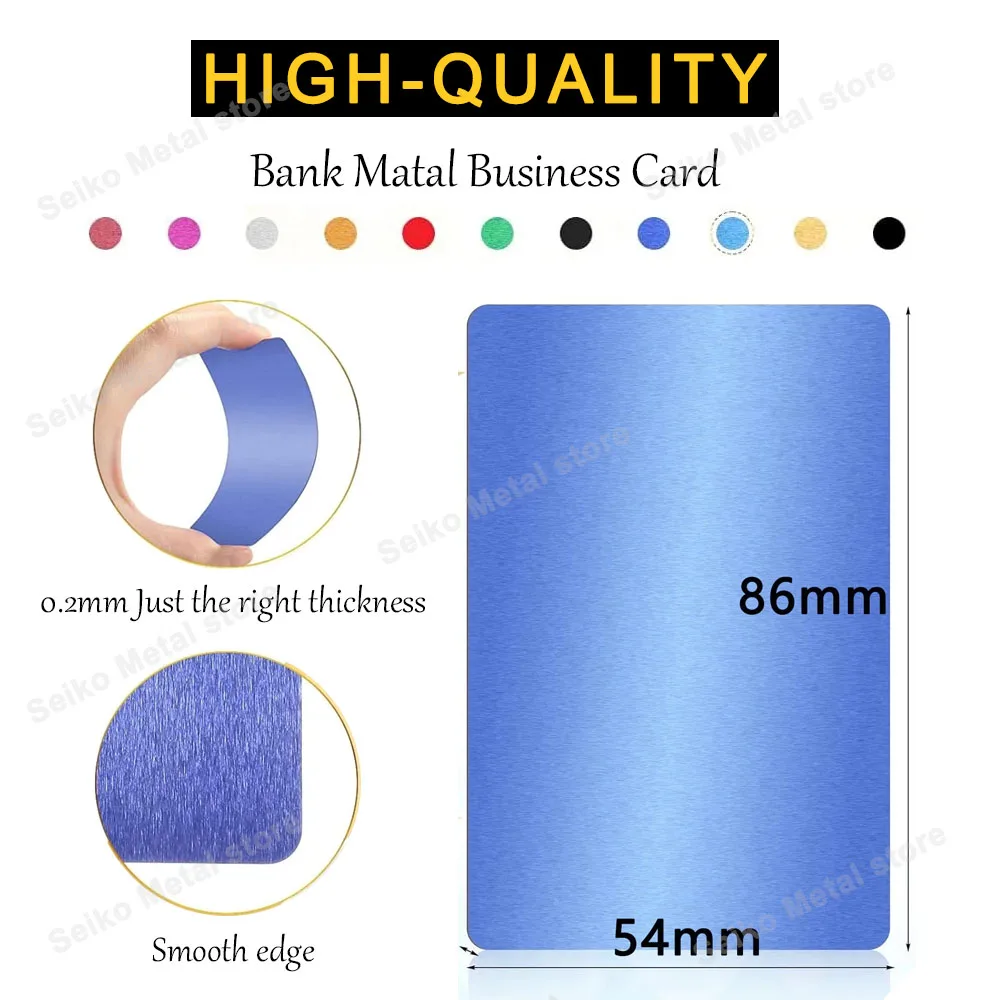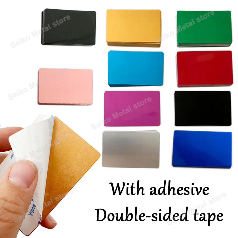 50 قطعة مع بطاقة الأعمال المعدنية اللاصقة الملونة إنهاء الألومنيوم فارغة بطاقات الحفر بالليزر شعار الطباعة DIY بها بنفسك اللوازم المكتبية