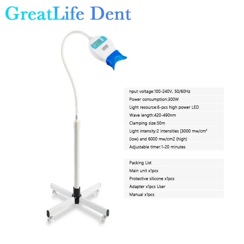 GreatLife تبييض الأسنان مصباح ليد 3 ألوان المهنية للأسنان مع حامل قابل للإزالة آلة مصباح تبييض الأسنان