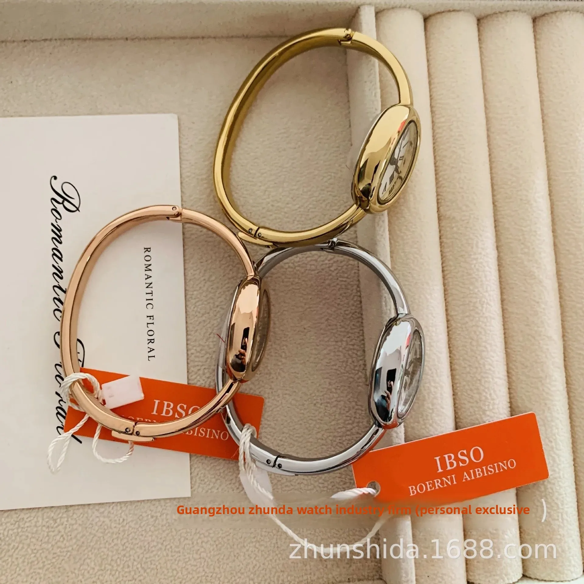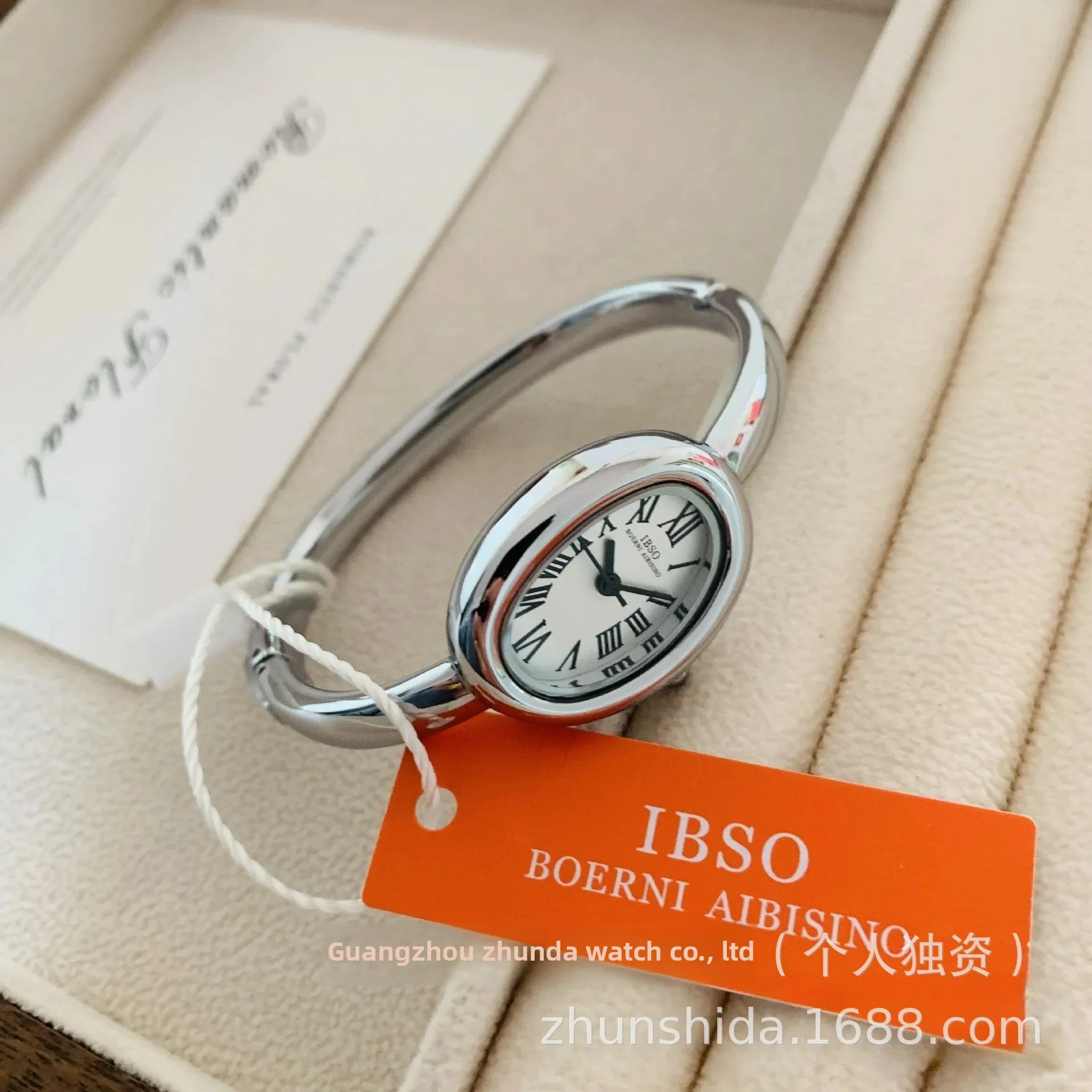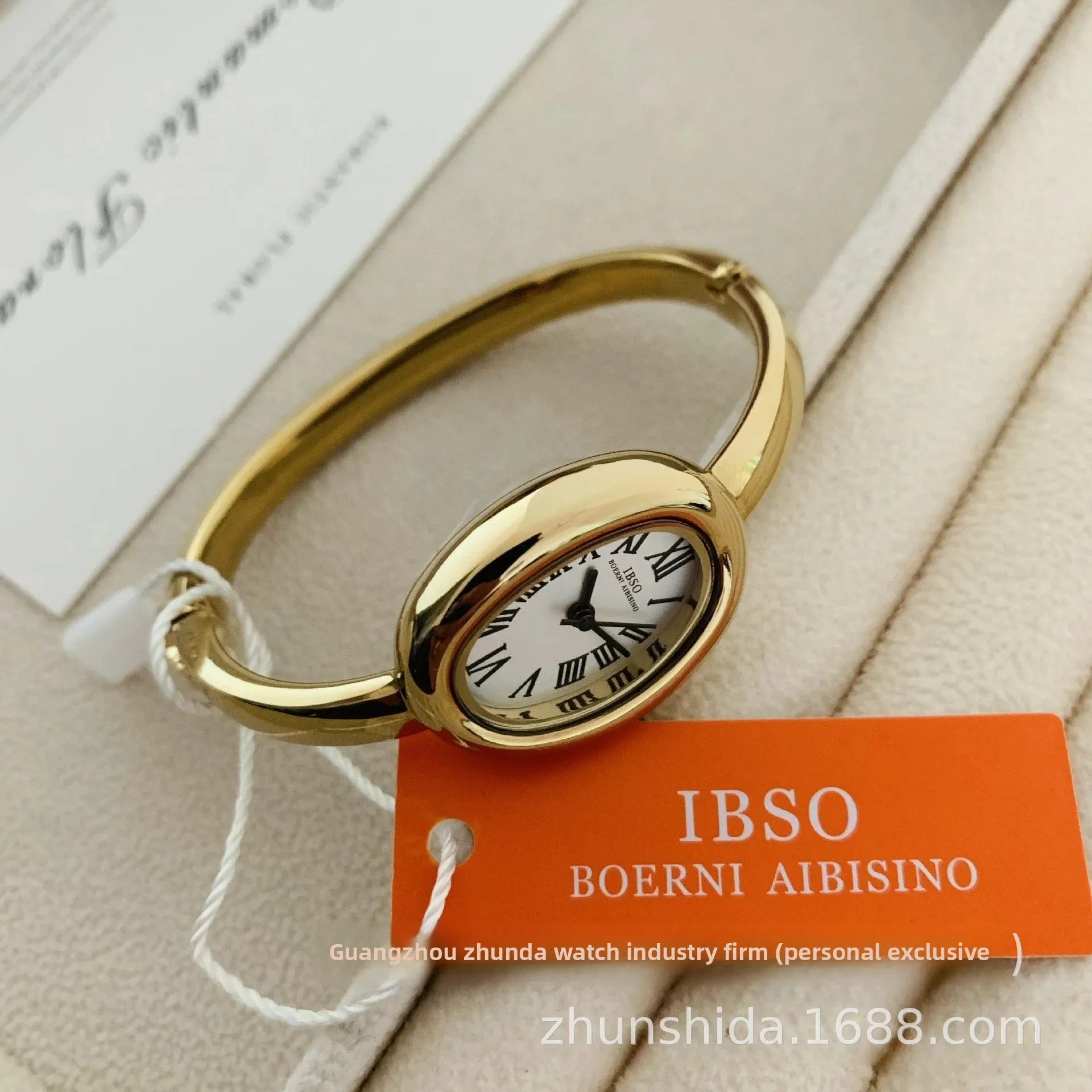 ارتفع الذهب البيضاوي السيدات سوار ساعة IBSO1189 مقياس روماني فاخر كوارتز ساعة اليد الإناث ساعة أنيقة الإكسسوارات