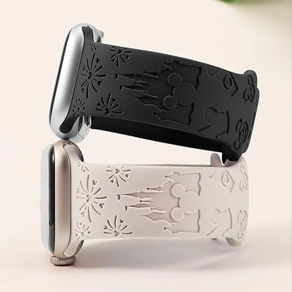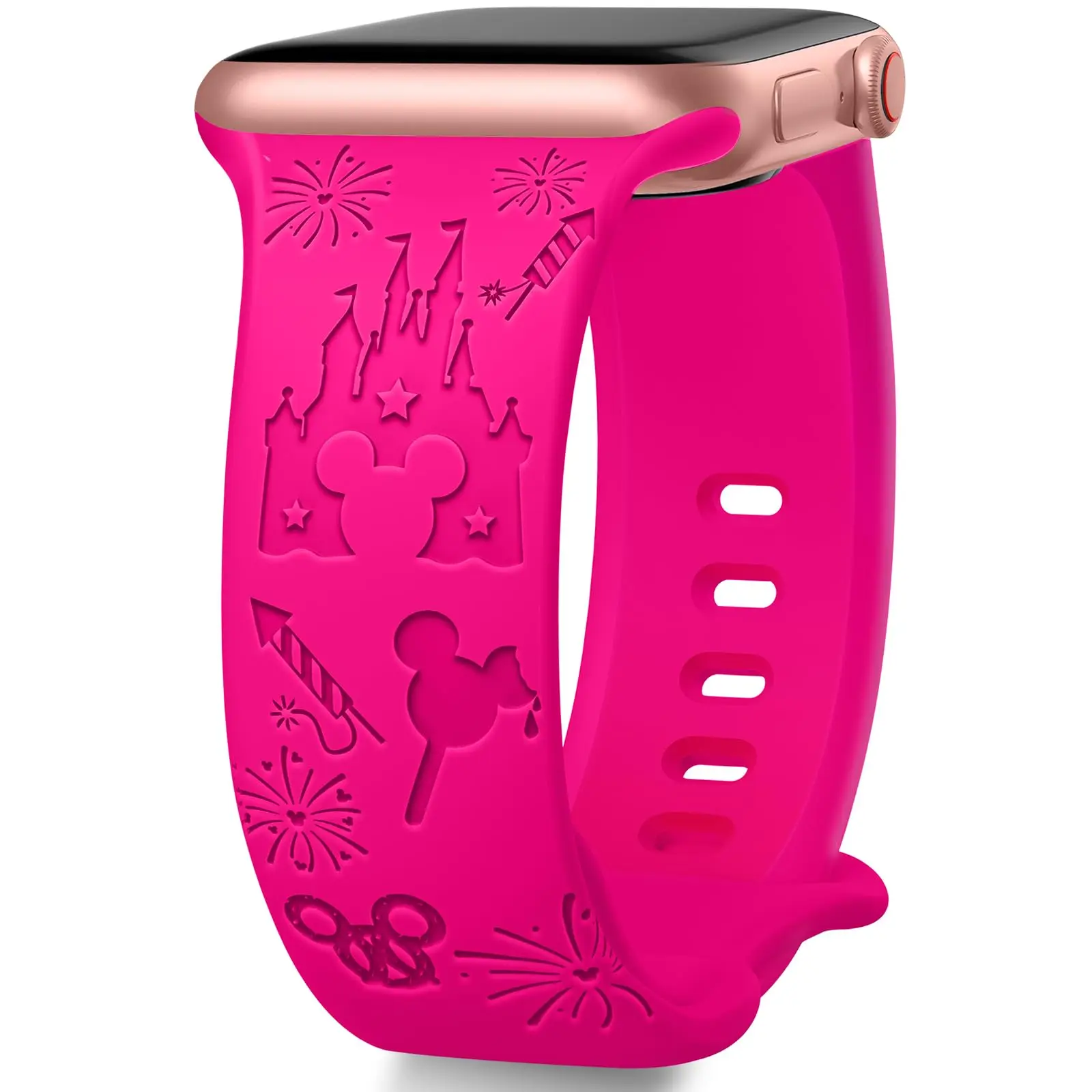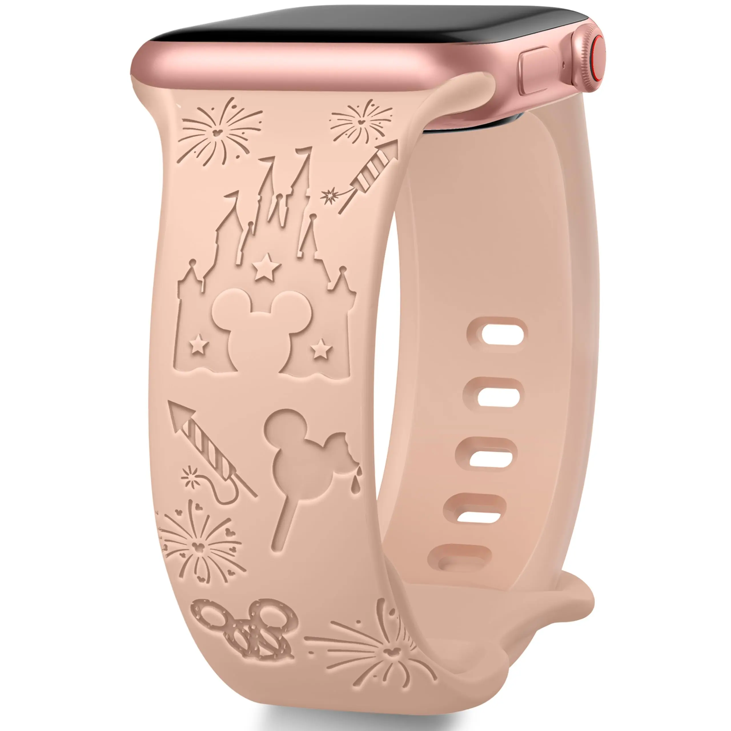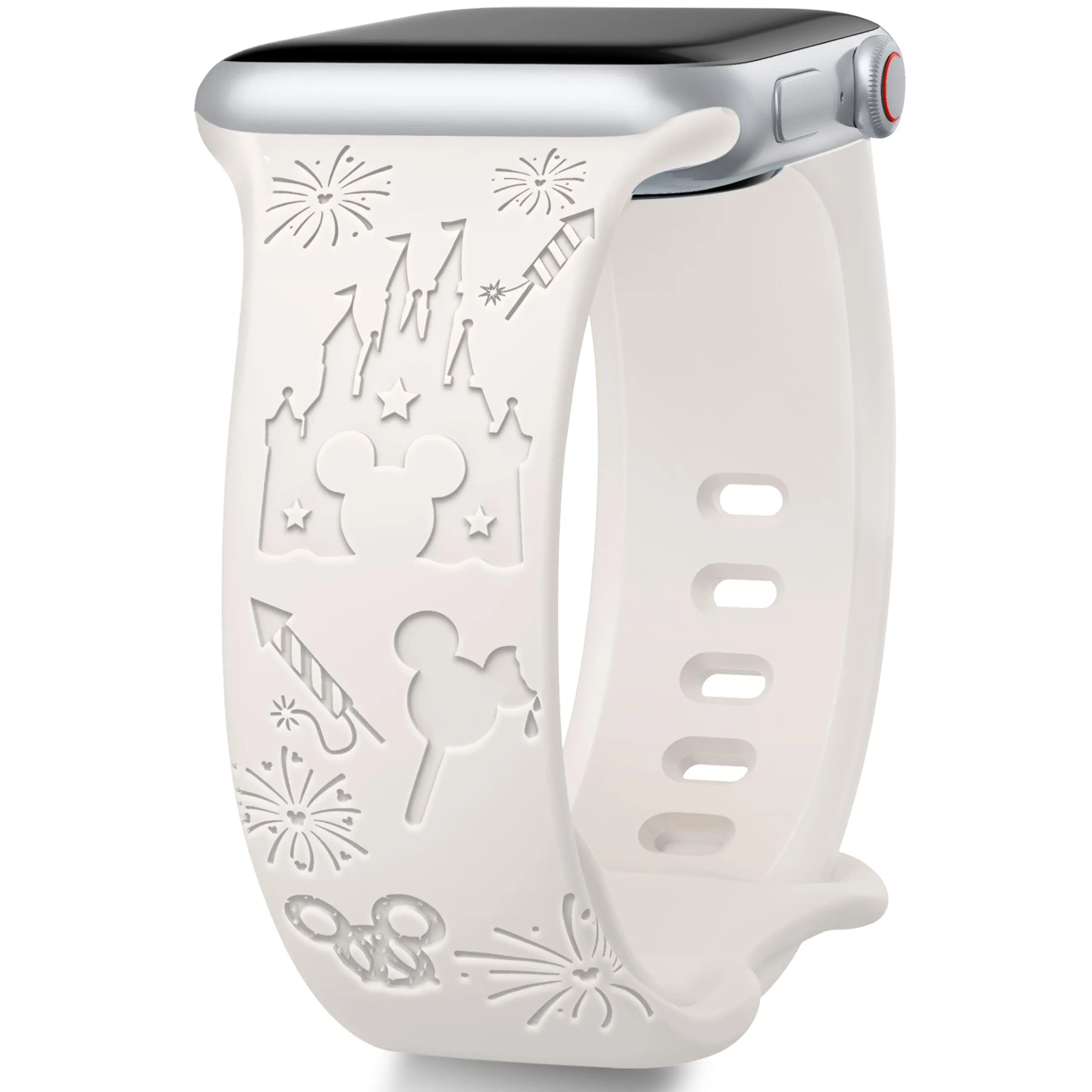 🎀【نمط كرتوني لطيف】تصميم جديد في عام 2024، تصميم منقوش، مظهر لطيف للغاية.تستخدم الأربطة النسائية الأنيقة من iWatch حرفة نحت بالليزر المتقدمة ويتم نقشها بقلاع فريدة ومخصصة وألعاب نارية وآيس كريم وأنماط قلب محببة وما إلى ذلك.