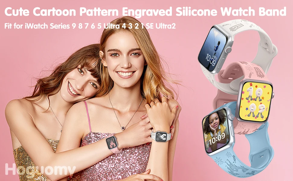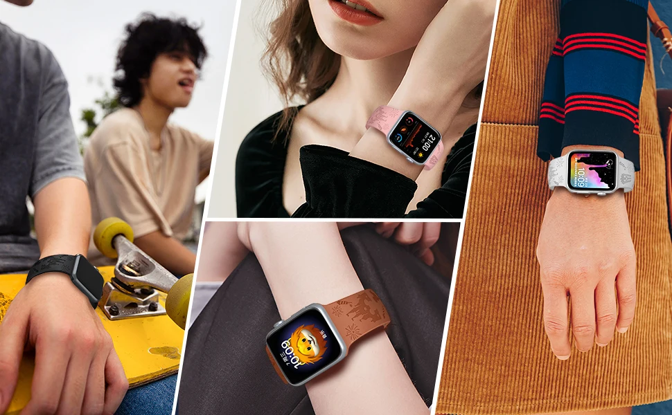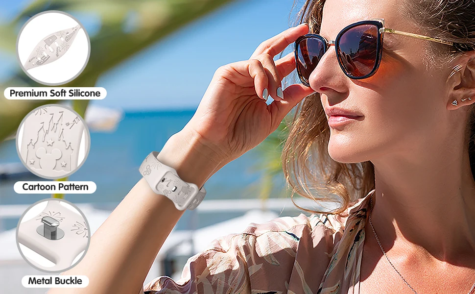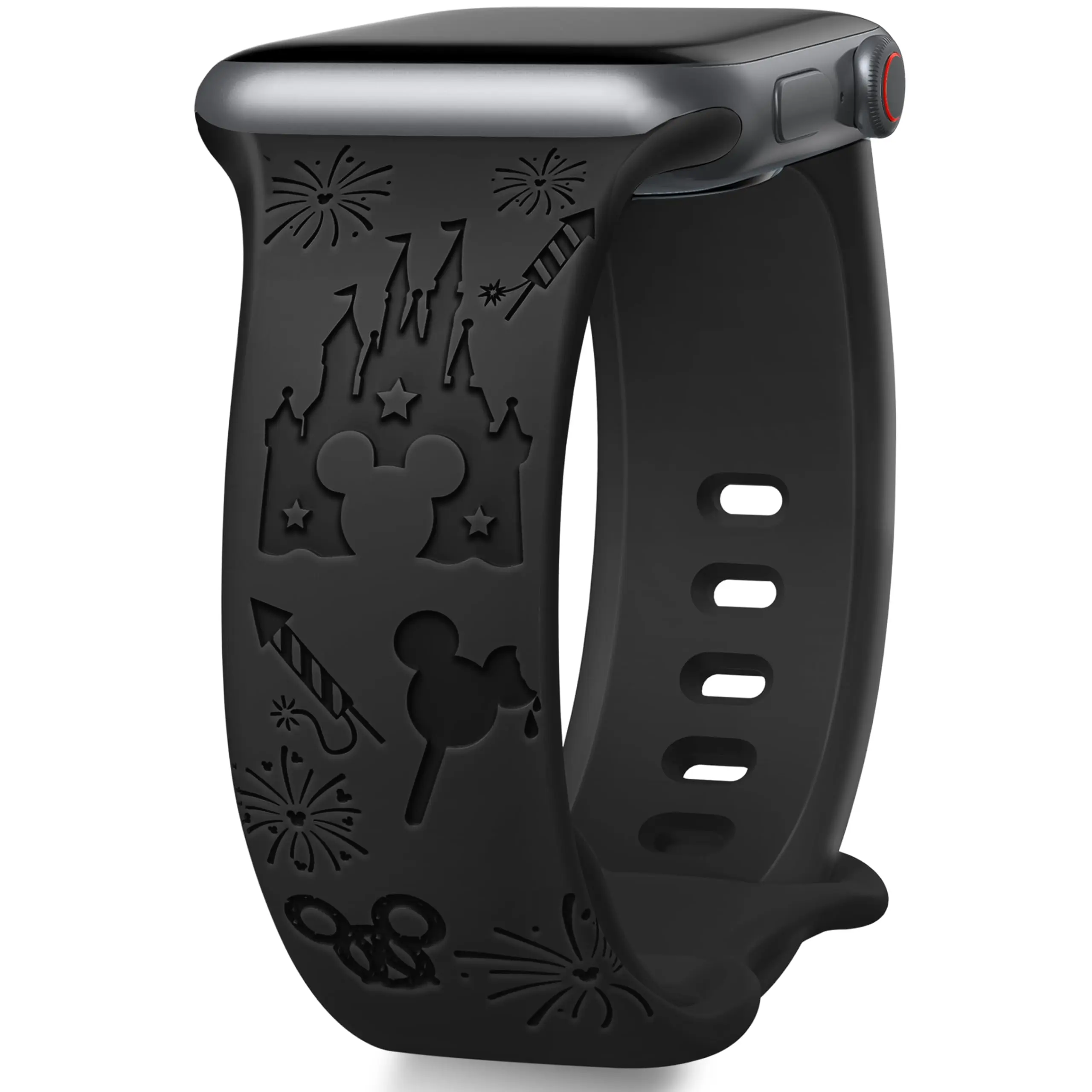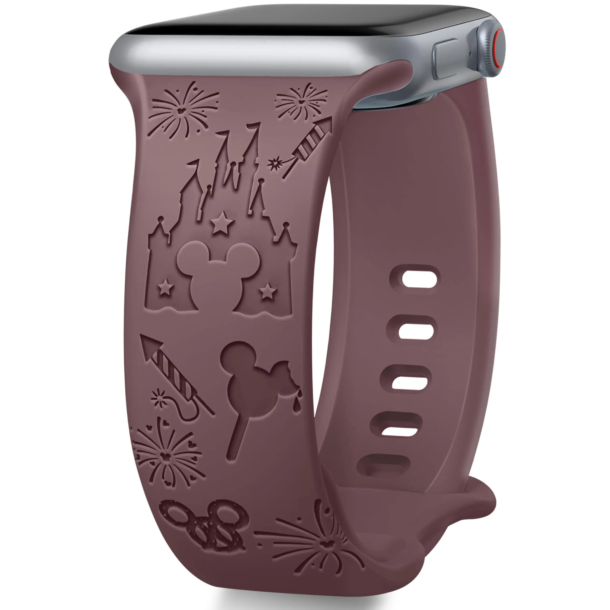 🎀【نمط كرتوني لطيف】تصميم جديد في عام 2024، تصميم منقوش، مظهر لطيف للغاية.تستخدم الأربطة النسائية الأنيقة من iWatch حرفة نحت بالليزر المتقدمة ويتم نقشها بقلاع فريدة ومخصصة وألعاب نارية وآيس كريم وأنماط قلب محببة وما إلى ذلك.