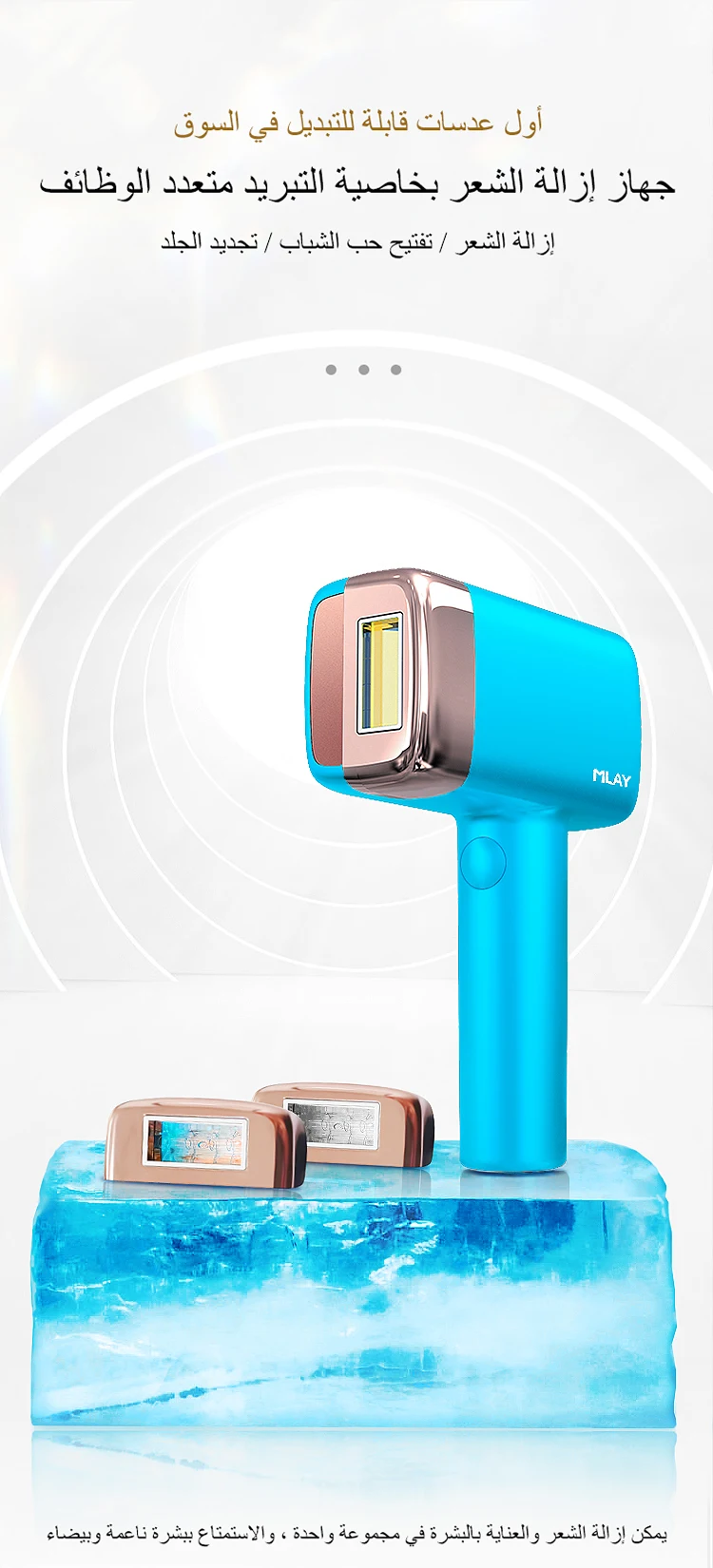 2. نظام إزالة شعر الجسم الأكثر فعالية - يستخدم مزيل شعر الجسم MLAY تقنية الضوء النبضي المكثف (IPL) لتقديم إزالة الشعر الدائمة الأكثر فعالية.يحتوي على 5 مستويات للطاقة، وسيعطي نتائج ممتازة في 4-6 جلسات علاج فقط.