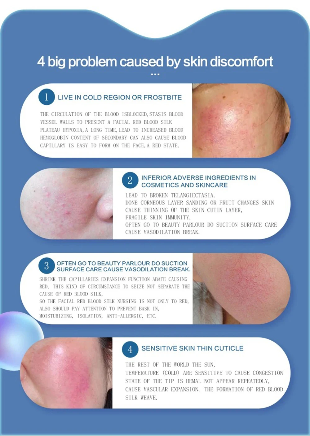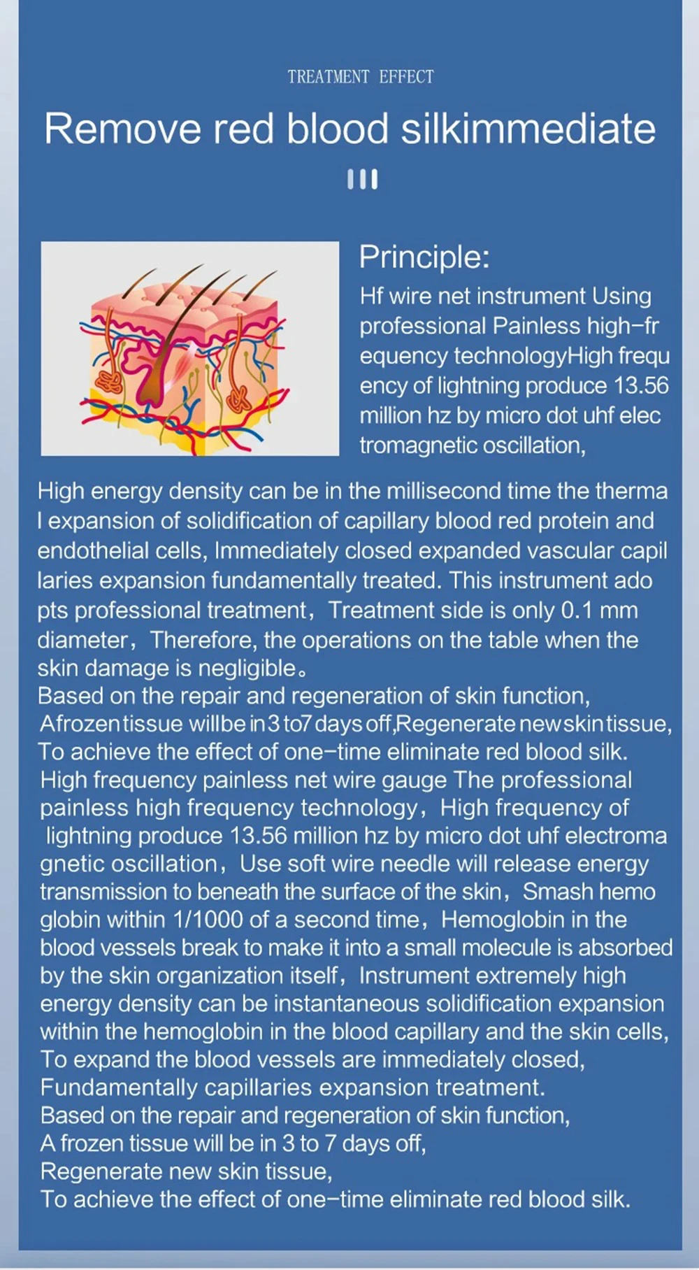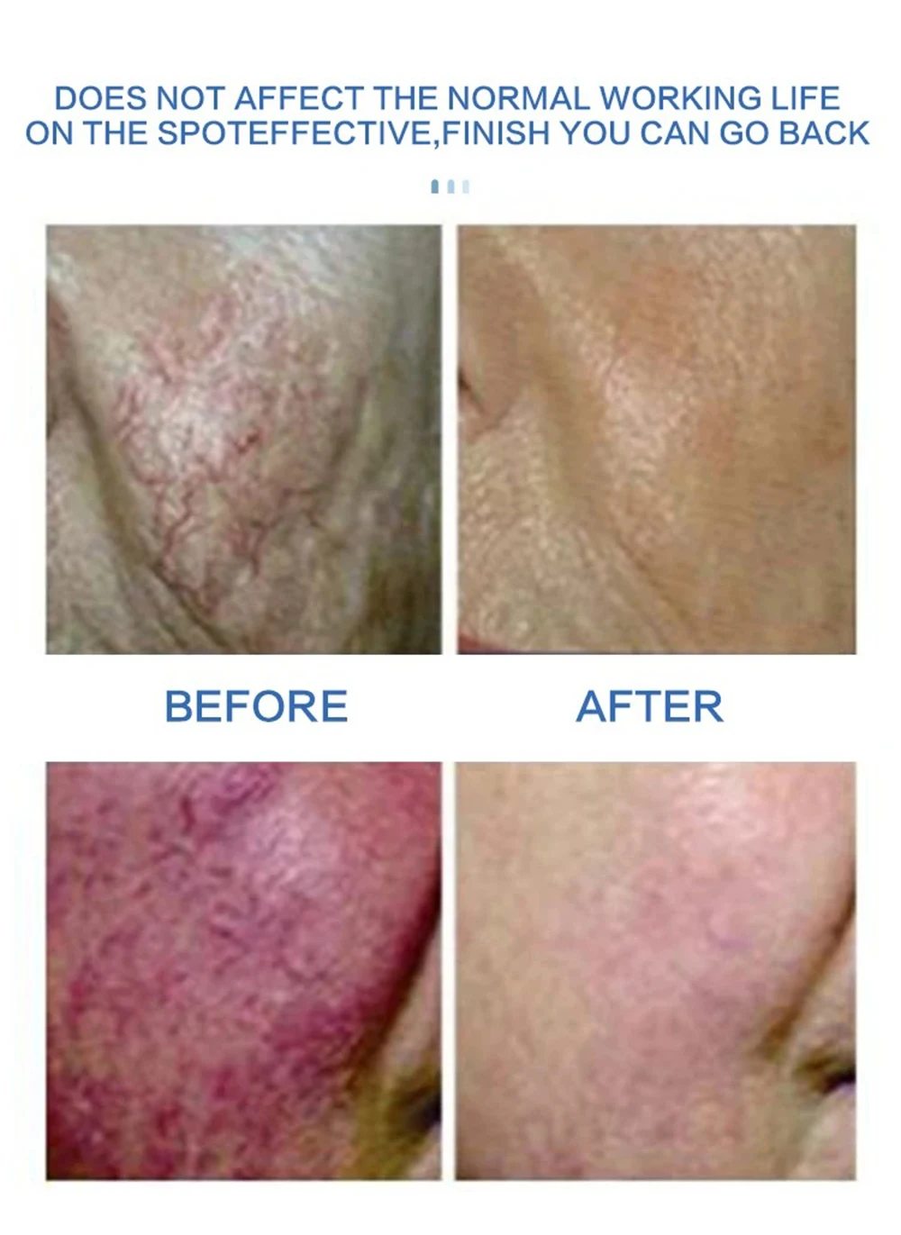 مبدأ العمل: باستخدام التكنولوجيا الإلكترونية المتقدمة، يمنع التيار الكهرومغناطيسي الدقيق الشعيرات الدموية الموسعة بشكل فعال