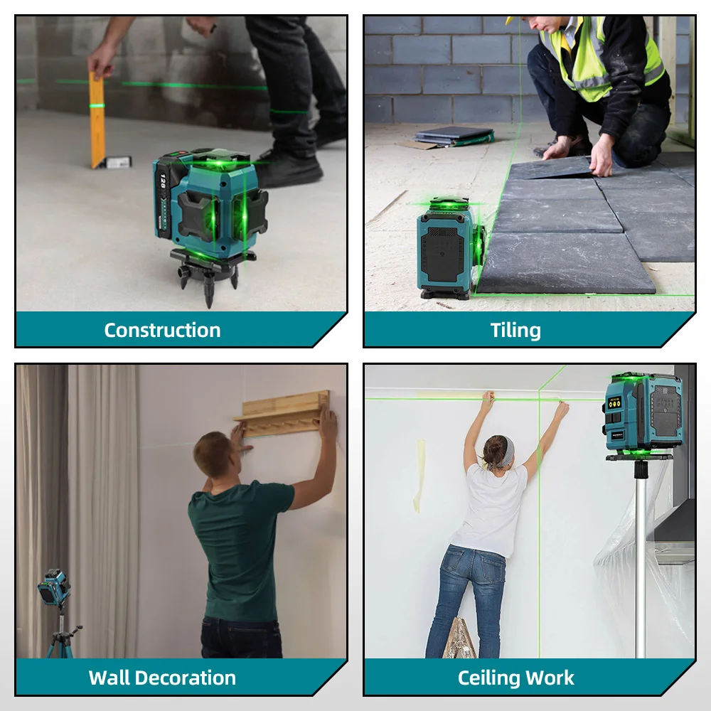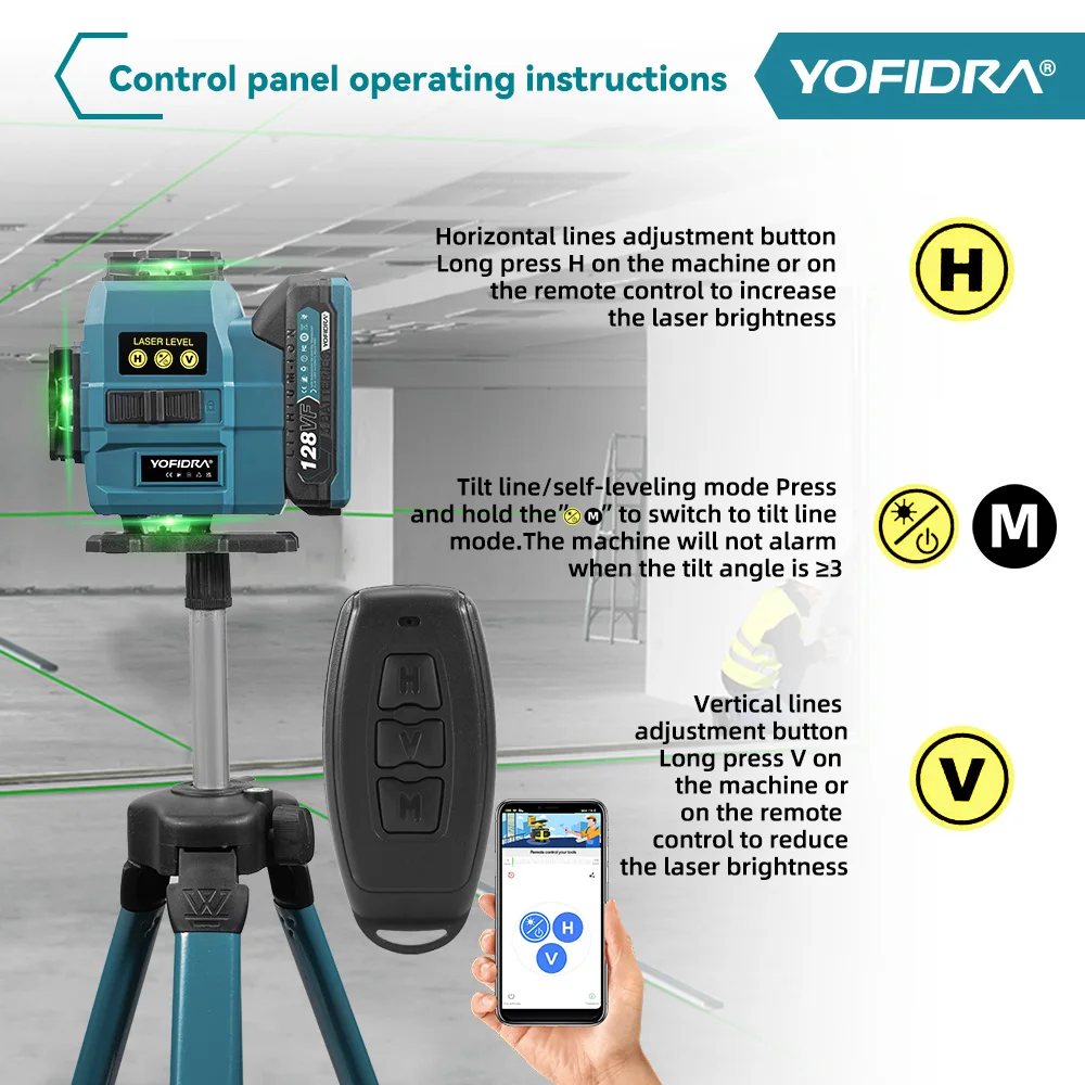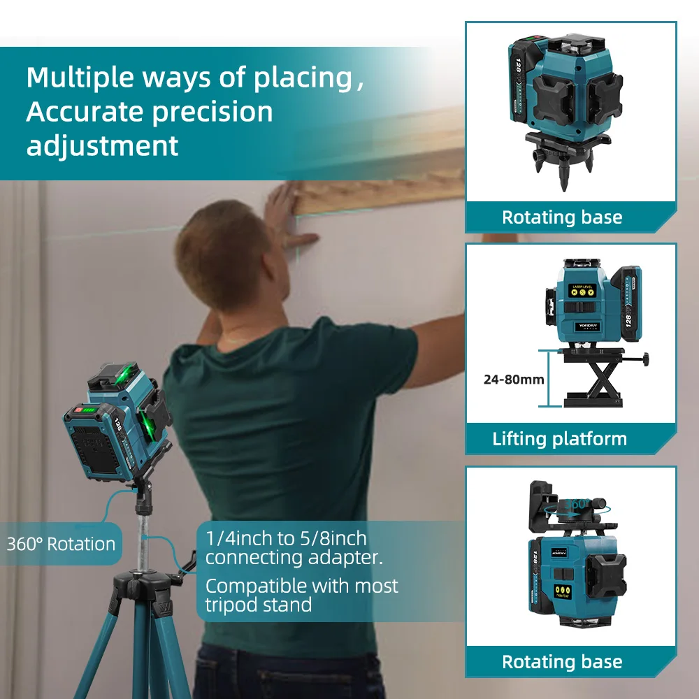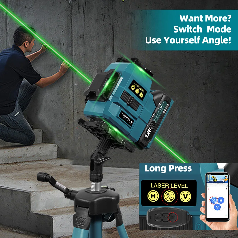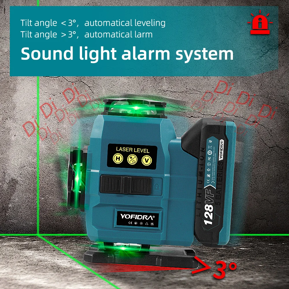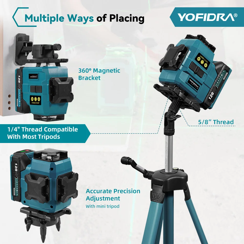 YOFIDRA 16 خطوط 4DLaser مستوى أوتوماتيكي 360 أفقي عمودي ذاتي التسوية قوة فائقة شعاع أخضر لدبوس بطارية ماكيتا 18 فولت