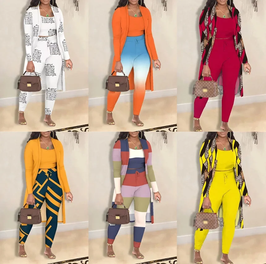 المرأة سترة طويلة خندق القمم و Bodycon بدل رجالي ملابس كاجوال بوهو مثير ثلاث قطع وتتسابق