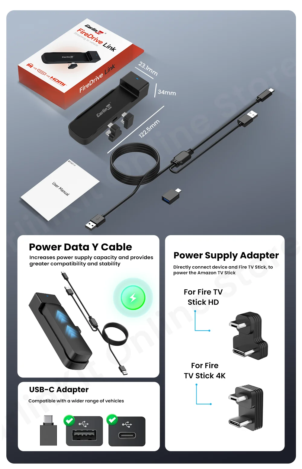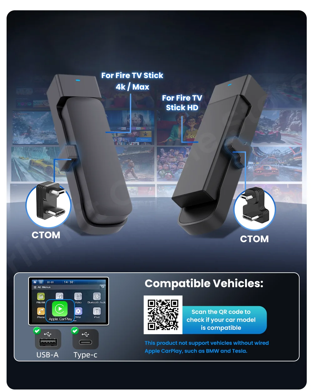 محول CarlinKit FireDrive Link HDMI يدعم Fire TV Stick Video Streaming Box مصمم لـ Amazon Fire TV Stick HD 4K Max Lite