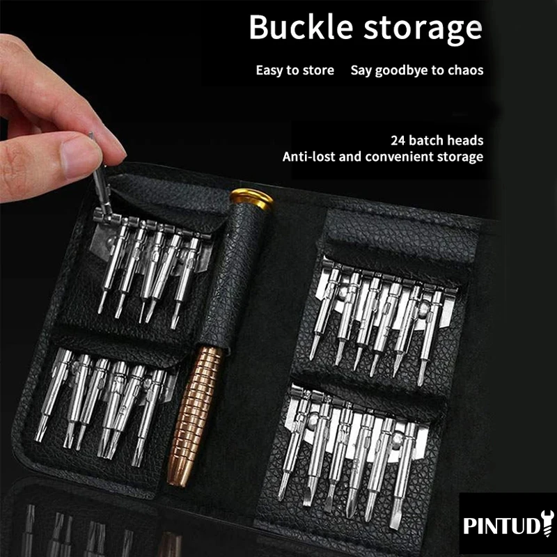 • مجموعة متعددة الوظائف مفك البراغي :مجموعة مفك البراغي 25 في 1 هي أداة متعددة الوظائف ، مثالية لتفكيك وإصلاح مجموعة متنوعة من الأجهزة. يشمل 20-29 قطعة ، مما يوفر حلاً شاملاً لاحتياجات الإصلاح الخاصة بك.
