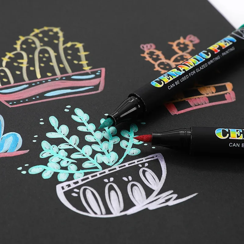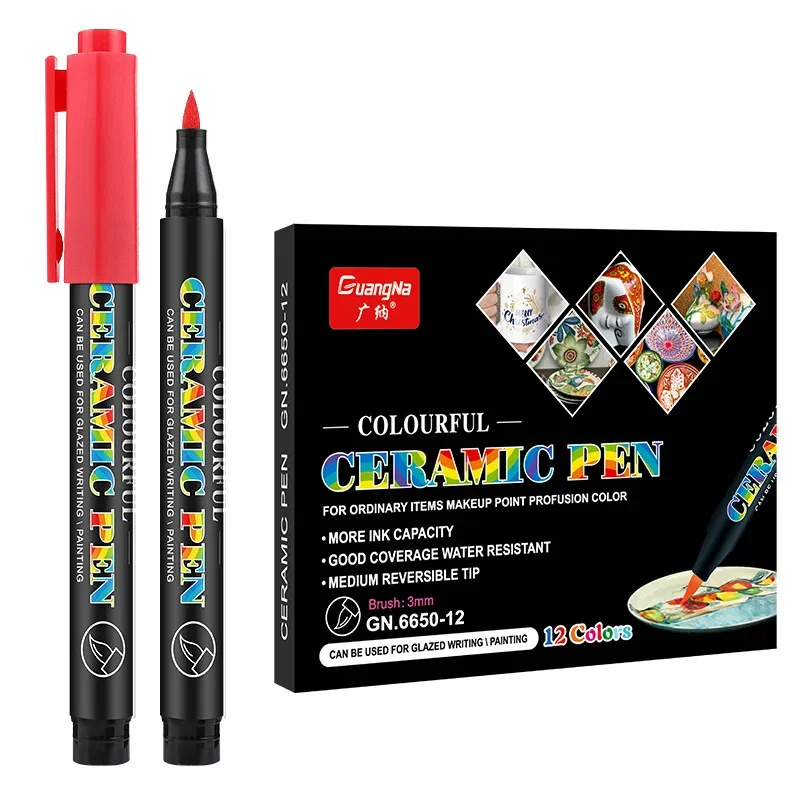 مجموعة أقلام تحديد سيراميك مخبوزة بالفرن بدرجة حرارة عالية 12/24 لونًا، أقلام طلاء أكريليك فائقة النعومة للصخور والحجر والخشب