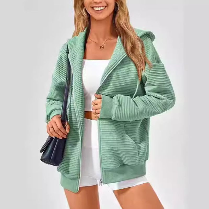 جacket كاجوال للنساء 2024 بلون صلب بحowl مع زر معدني لخريف وشتاء النساء