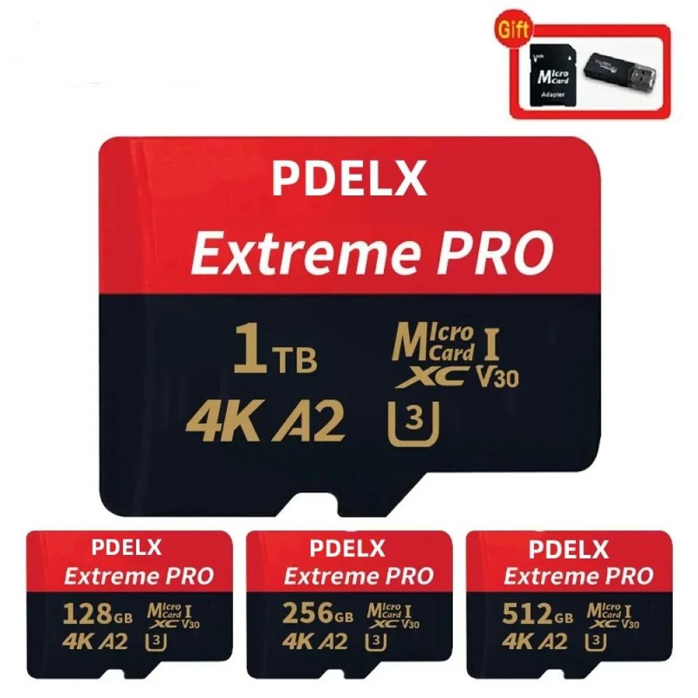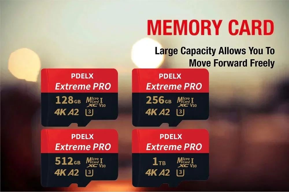 بطاقة ذاكرة Micro SD/TF عالية السعة، متوفرة بأحجام: 128GB، 256GB، 512GB، وحتى 1TB، مناسبة للهواتف، الكاميرات، والكمبيوترات، مثالية لتخزين الصور والفيديوهات والملفات، سرعة نقل عالية، تدعم دروبشيبينغ.