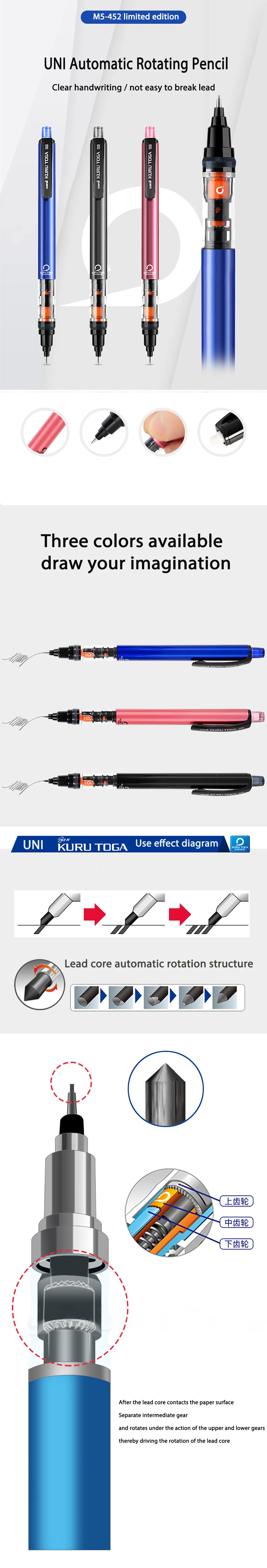 UNI KURU TOGA قلم رصاص ميكانيكي M5-452 الرصاص الأساسية الدورية المضادة للكسر الأساسية تلميح قابل للسحب 0.5 مللي متر لطيف القرطاسية اللوازم المدرسية