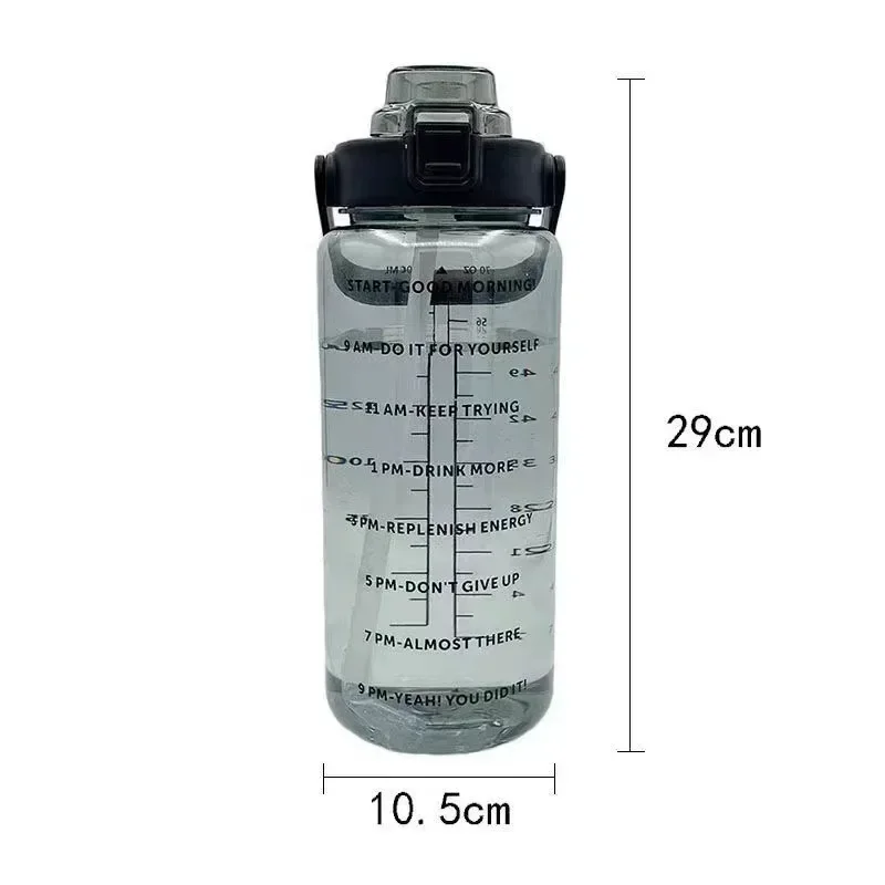 زجاجة مياه رياضية سعة 2 لتر، كوب ماء بلاستيكي بسعة كبيرة، زجاجة مشروبات محمولة مع علامة زمنية لغطلاية اللياقة البدنية الرياضية الخارجية