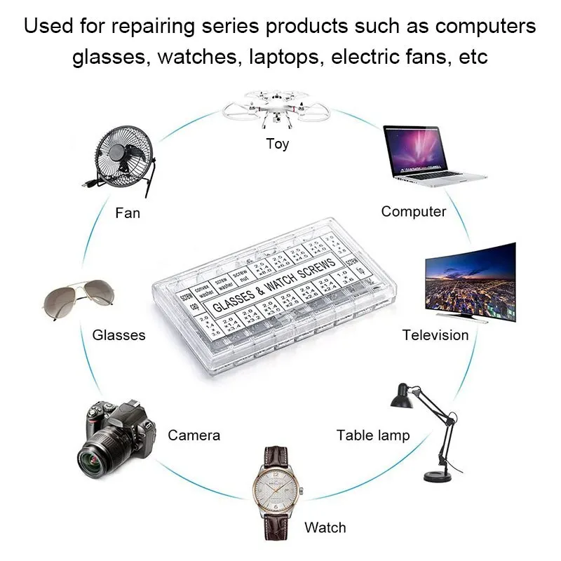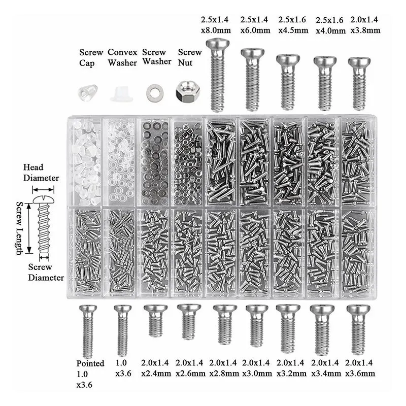 مجموعة نظارات برغي عدسة دعم الأنف الساق الجوز بدون إطار نظارات فاصلة إكسسوارات 18 مواصفات صندوق مجموعة برغي