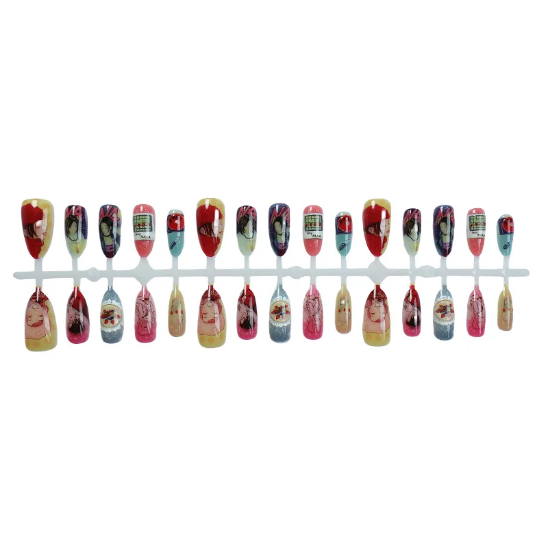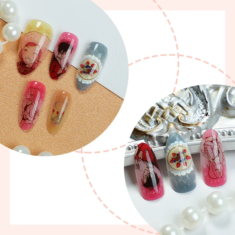 30 قطعة نمط أنيمي غطاء كامل مسمار تلميح الملونة اللوز مسمار كاذب الفن حلية للفتيات يمكن ارتداؤها اضغط على الأظافر مجموعة الأظافر وهمية