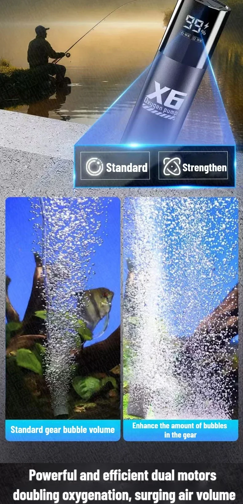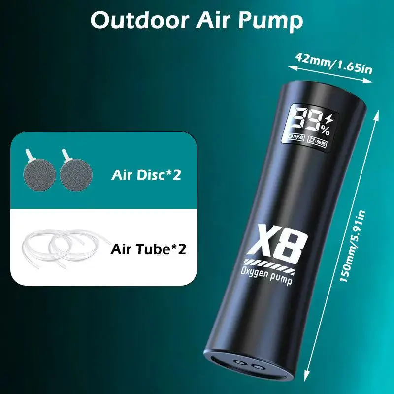 مضخة أكسجين كهربائية لصيد الأسماك في الهواء الطلق، خزان أسماك صغير منزلي، واجهة USB محمولة قياسية مكونة من فتحتين، حجر هواء/صينية هواء + أنبوب هواء + شاشة رقمية