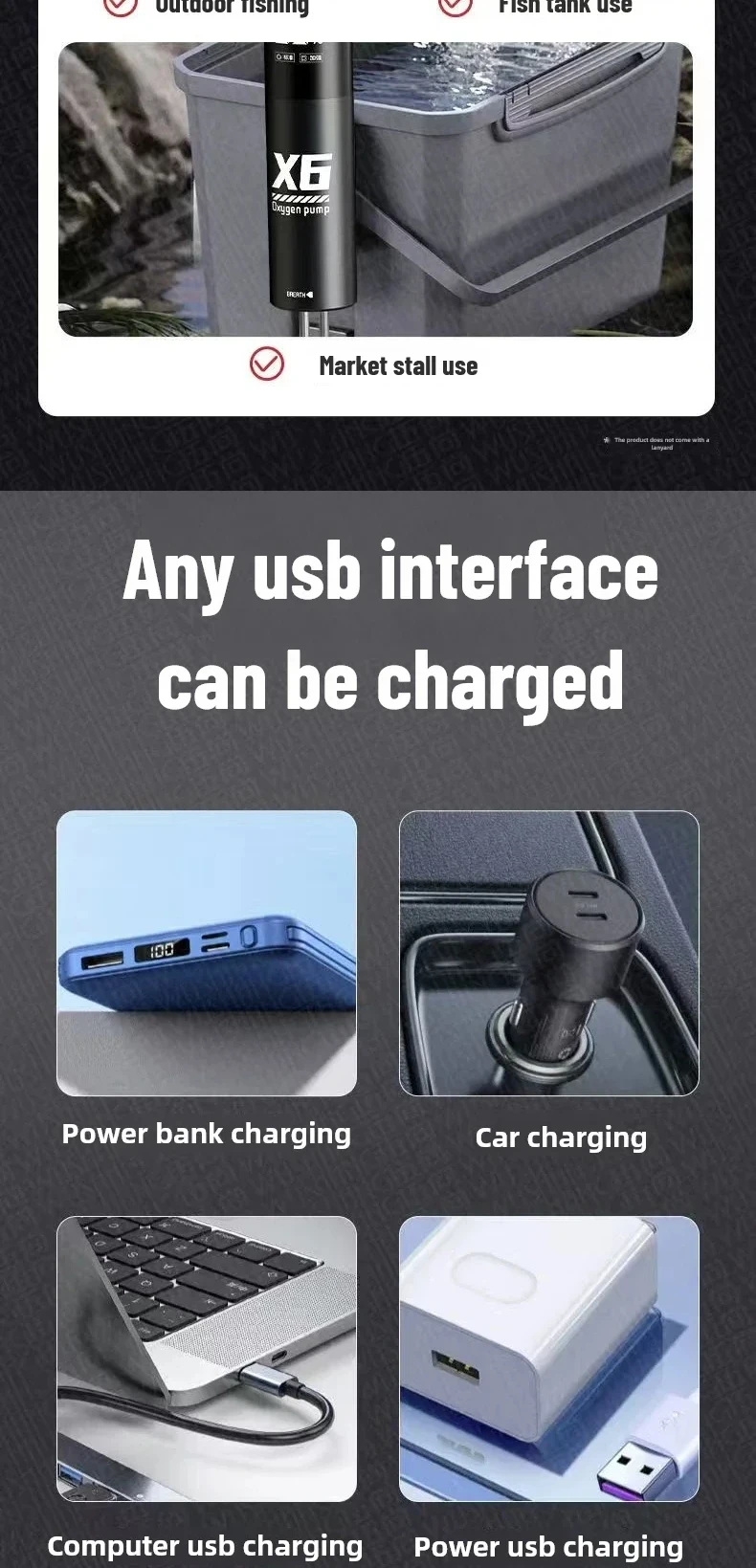 حوض السمك خزان الأسماك مضخة أكسجين شحن ثنائي الغرض مضخة هواء USB بطارية ليثيوم المنزلية المحمولة الصيد كتم 2400ma في الهواء الطلق