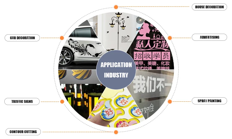المواد: ملصق لاصق من الفينيل، ورق حرفي، رصاصة رملية، ورق حائط، فيلم نقل الحرارة، PET، PP، PVC، PC، إلخ.(السمك الأقصى: أقل من 1 مم)