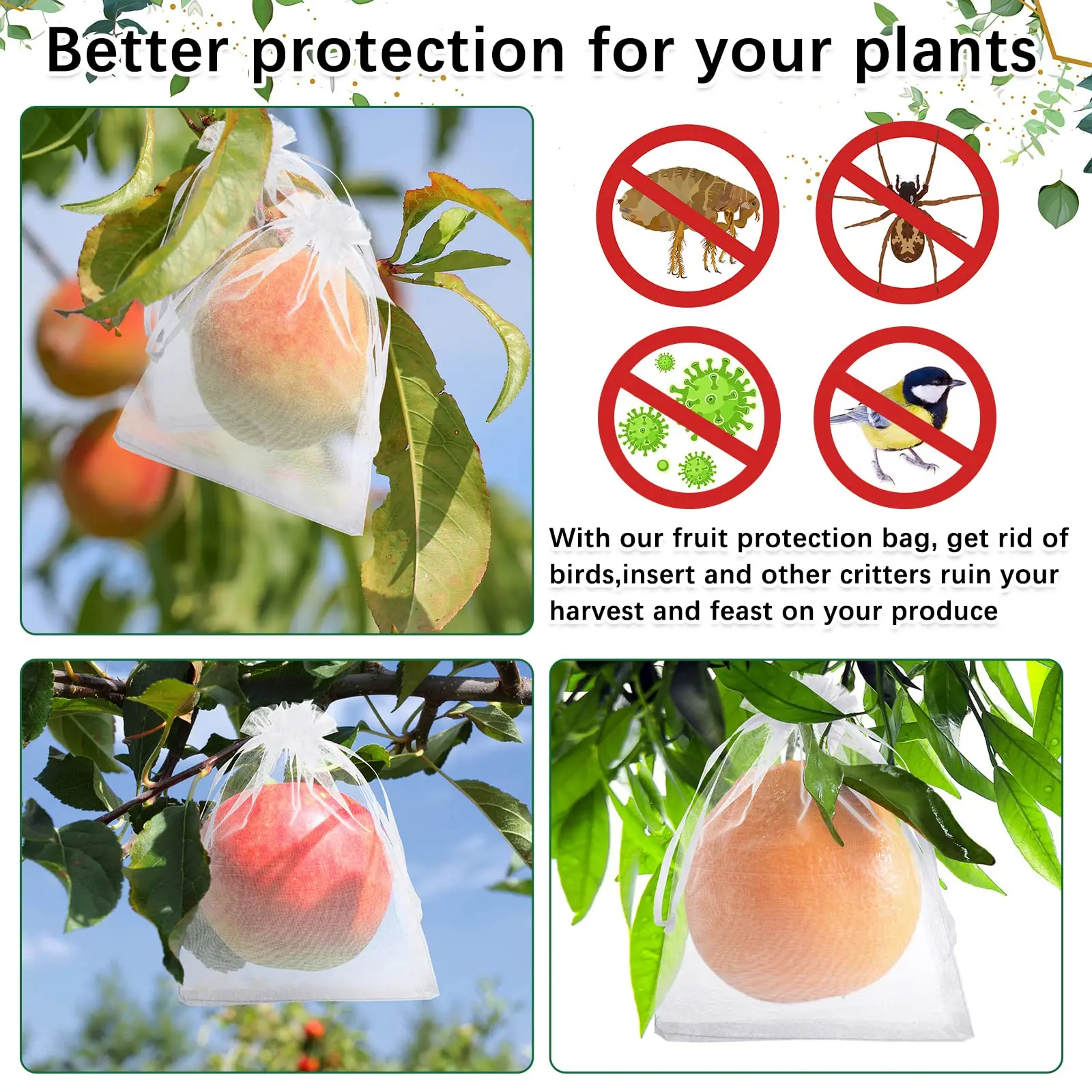 10-100 قطعة أكياس حماية الفاكهة أكياس شبكية الفاكهة مع الرباط غطاء الفواكه حقيبة شبكية لأشجار الزهور النباتية والخضروات