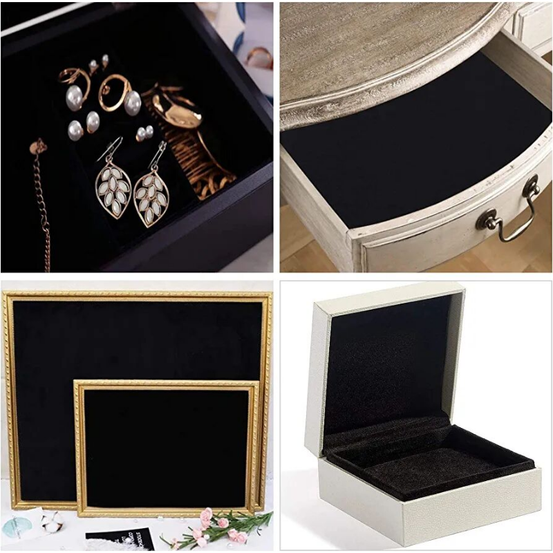 الميزة:علامة تجارية جديدة وعالية الجودة بنسبة 100%المواد: قطيعالنوع: قماش متدفق ذاتي اللصقالاستخدام: امتصاص الصوت، بطانة واقية لأدراج أثاث المجوهرات D...