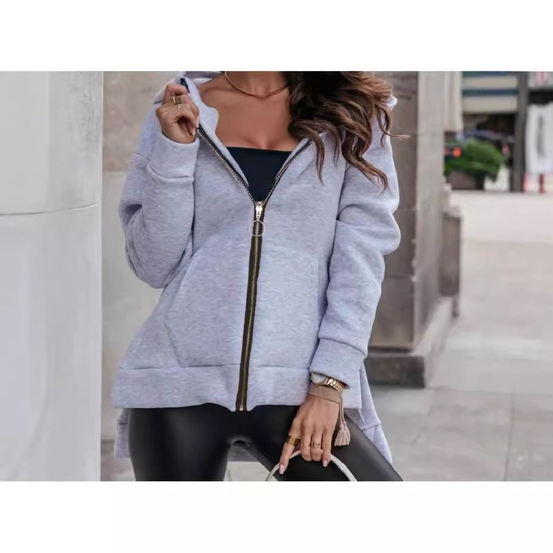 موديل 2024 شتوي خريفي موضة يابانية وكورية عادية من قماش天鹅绒، سويتشرت كارديغان بقبعة فضفاض للنساء.