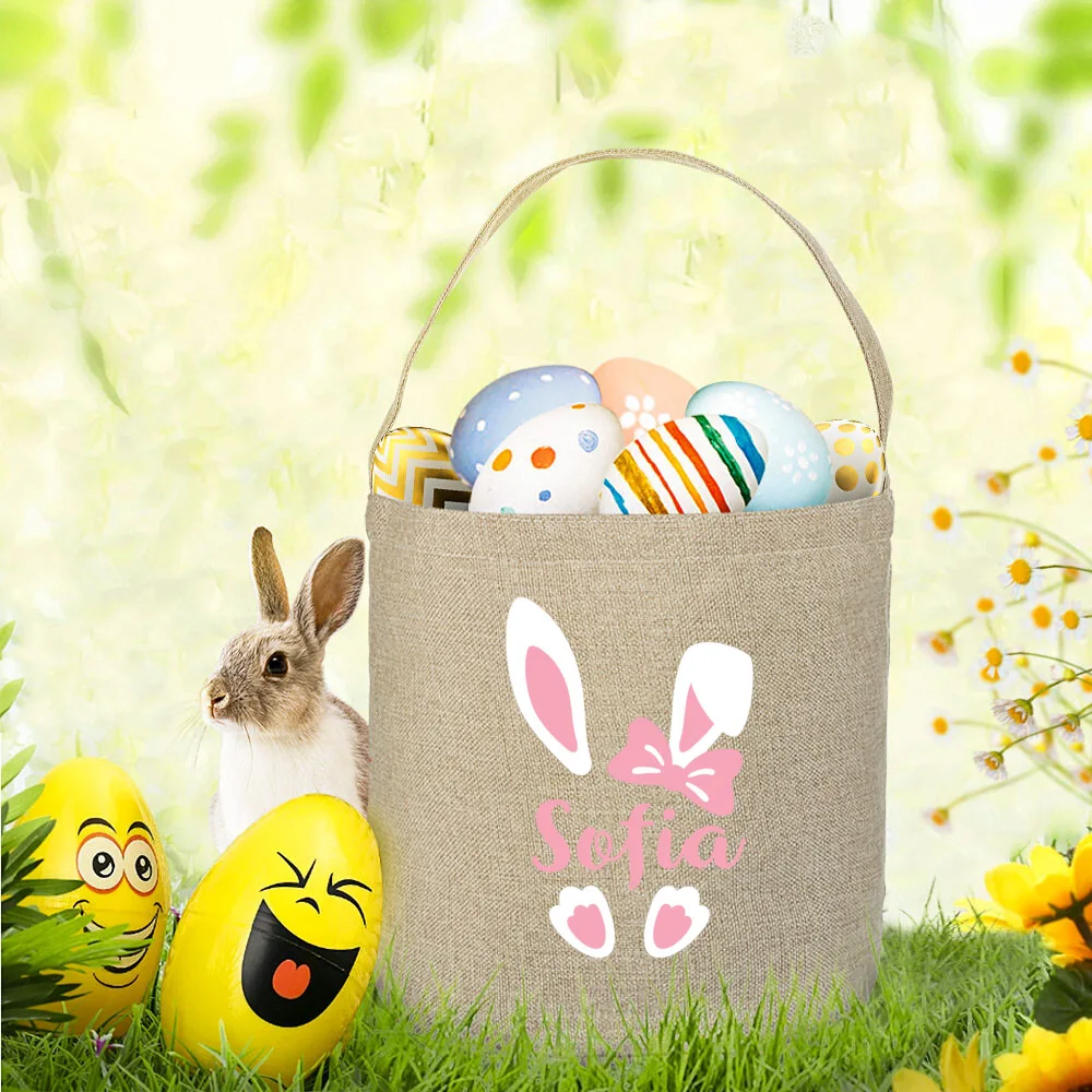 أرنب عيد الفصح الأذن لطيف أرنب دلو مخصص حقيبة عيد الفصح مع اسم الفتيات الفتيان الأرنب سلة اسم أكياس هدايا للأطفال في ds