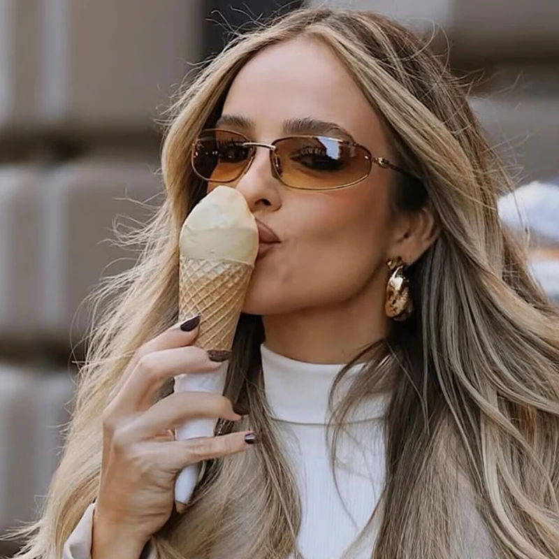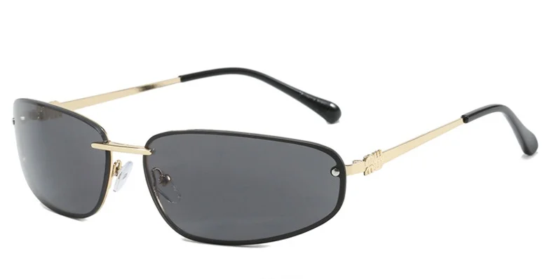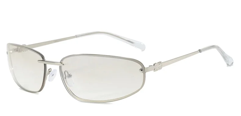 البيضاوي فرملس Y2K النظارات الشمسية الفاخرة العلامة التجارية تصميم الراقية التصميم فاسق النظارات الشمسية في الهواء الطلق الرجعية شخصية النظارات الشمسية النساء