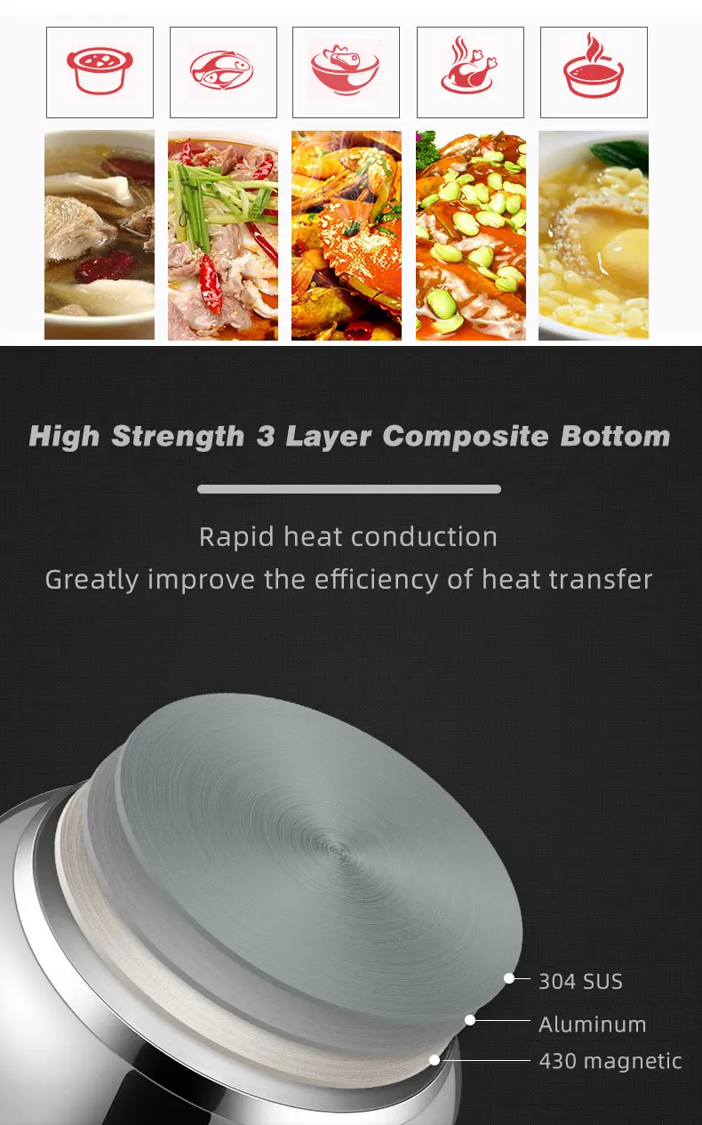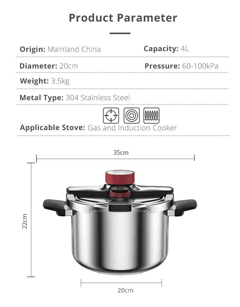 طنجرة الضغط متعددة الوظائف، قدر الضغط المقاوم للانفجار، وعاء ضغط المطبخ من الفولاذ المقاوم للصدأ