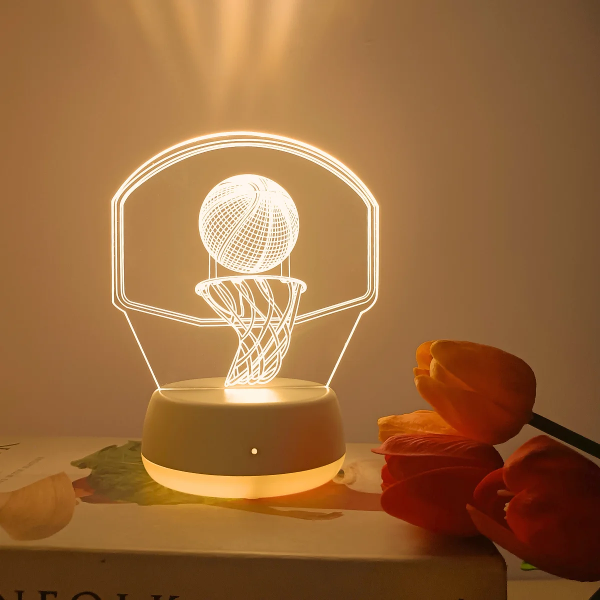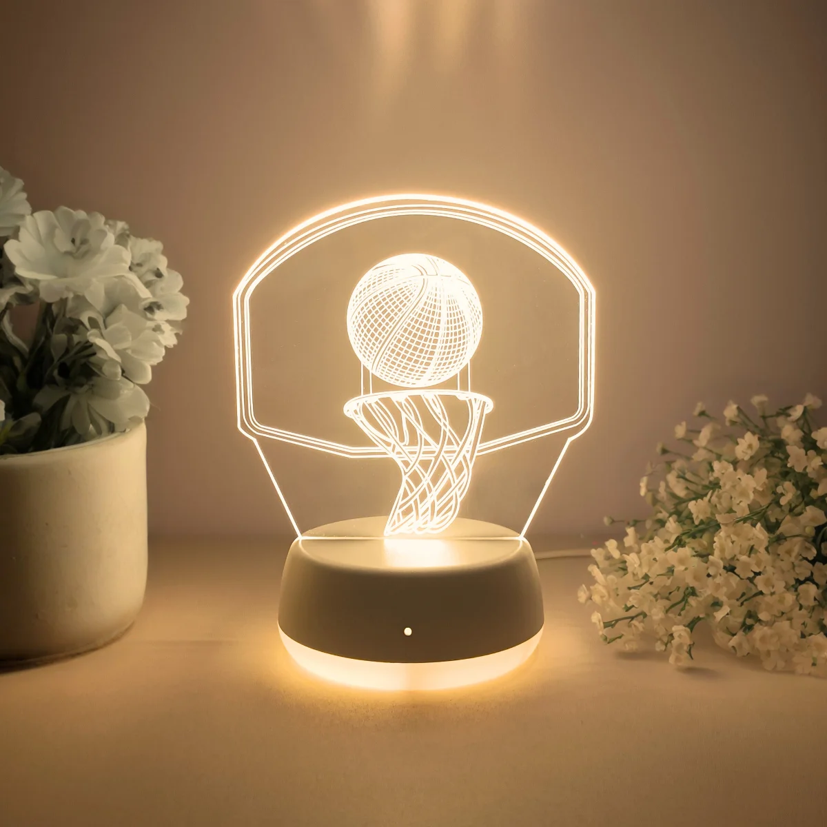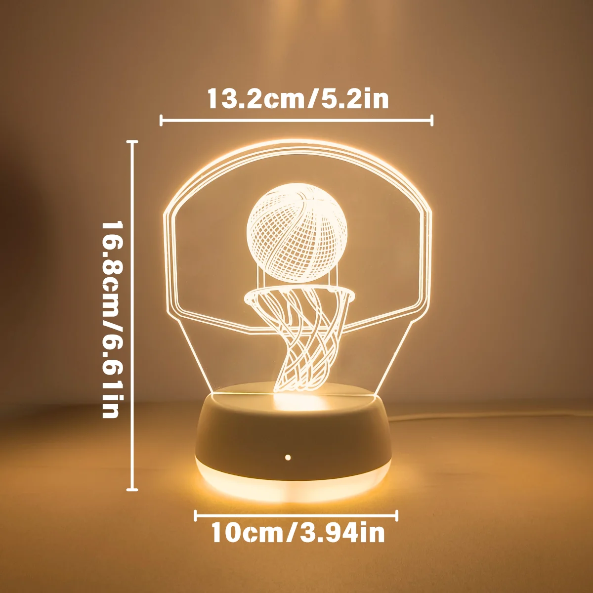 1 قطعة سلسلة كرة السلة الحديثة ثلاثية الأبعاد لون دافئ LED ضوء الليل، التحكم في التبديل، مناسبة لأنواع الغرف المختلفة، مصدر طاقة USB.