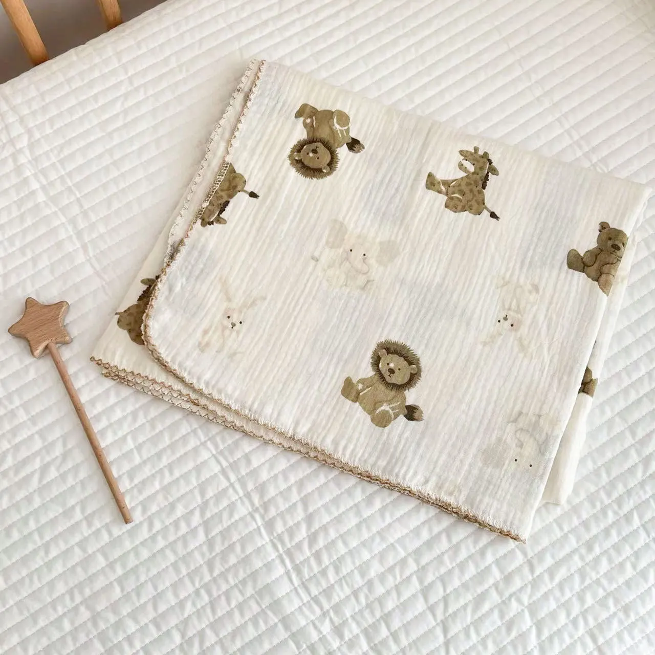 طفل بطانية من الموسلين 110X130 سنتيمتر قماط بطانية الشاش رقيقة لحاف الأزهار طباعة طبقة مزدوجة القطن عربة غطاء فراش أطفال