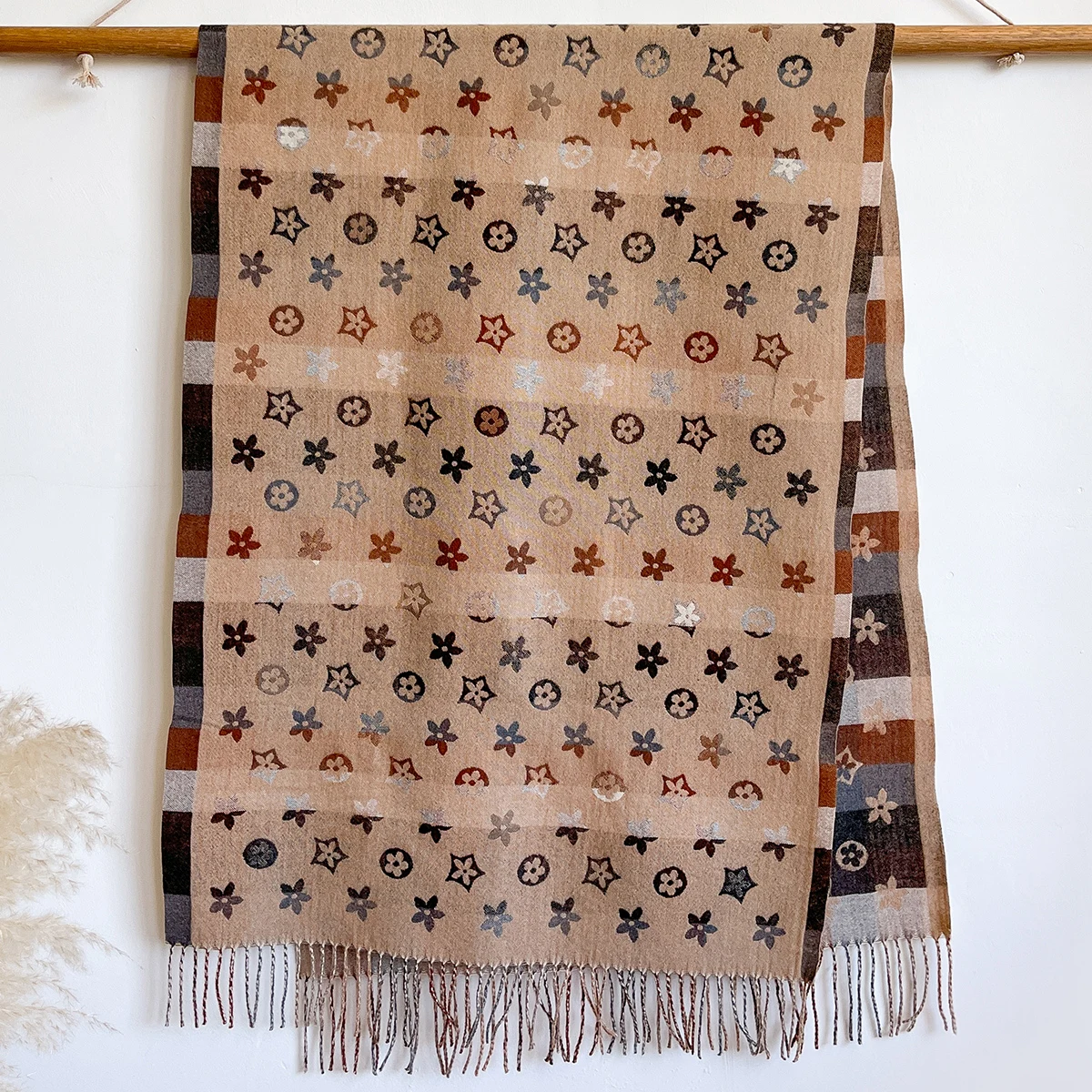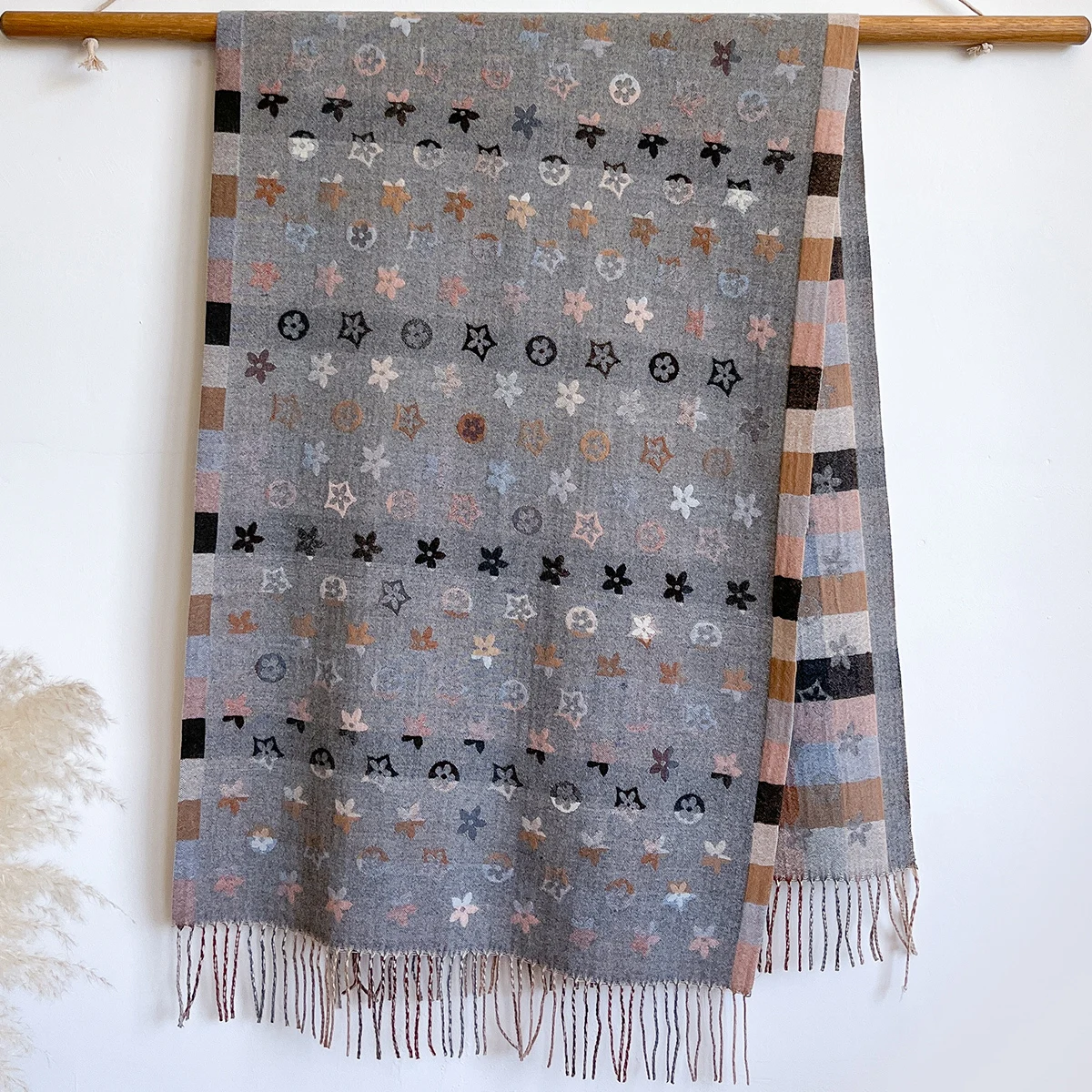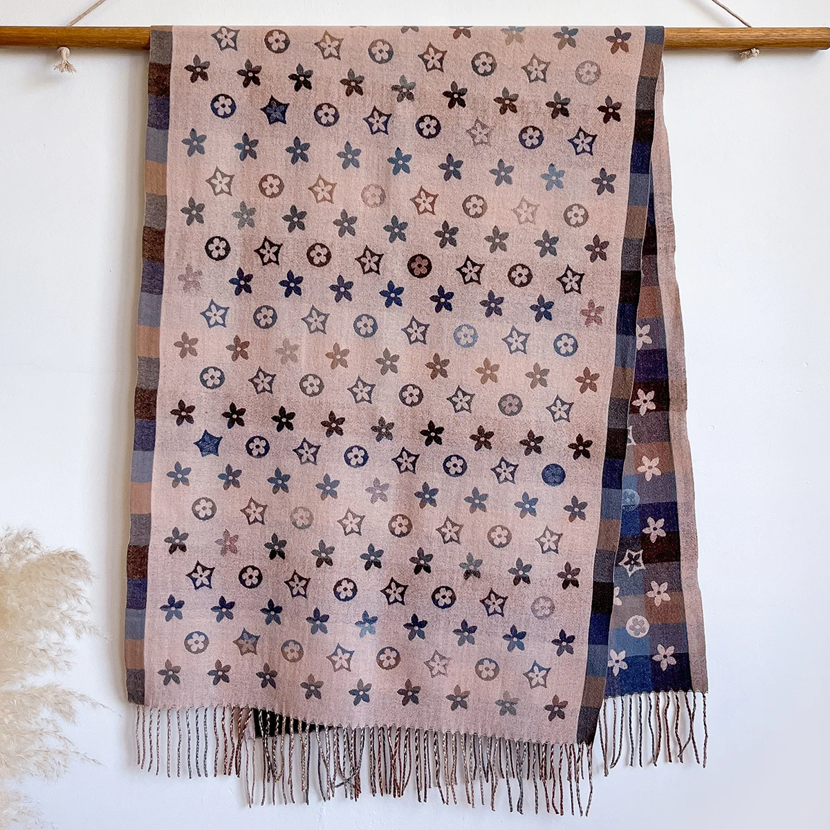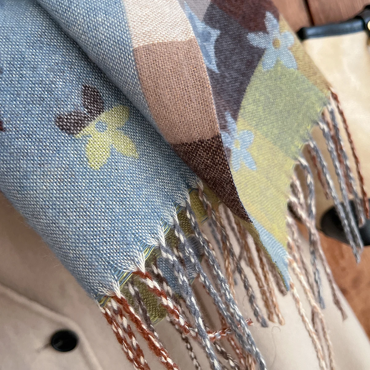 وشاح نسائي أنيق بنمط وطني من الكشمير الصناعي إنفينيتي شتاء دافئ على الوجهين سميك مطبوع عليه زهور شال مريح