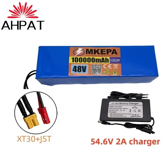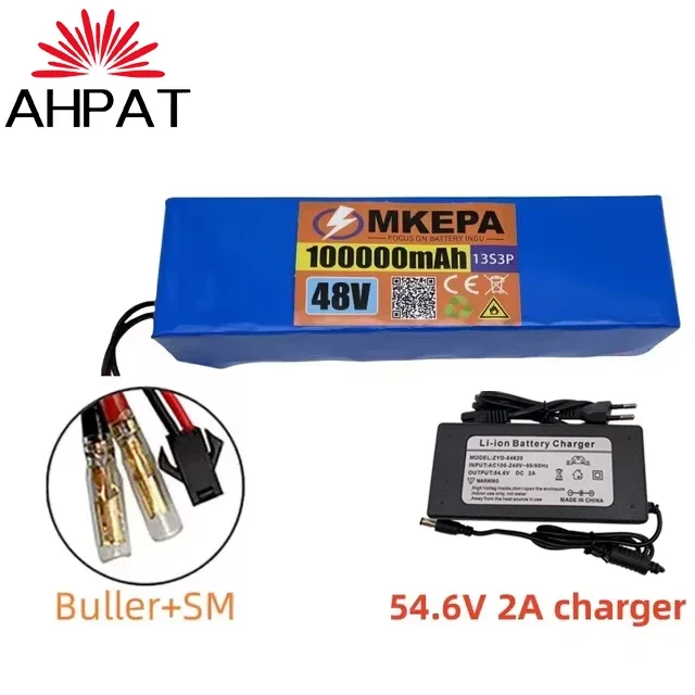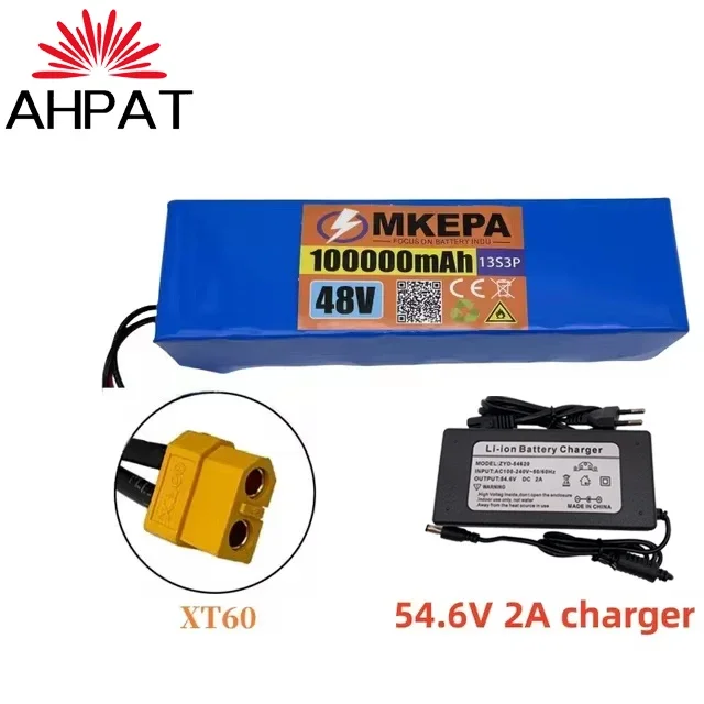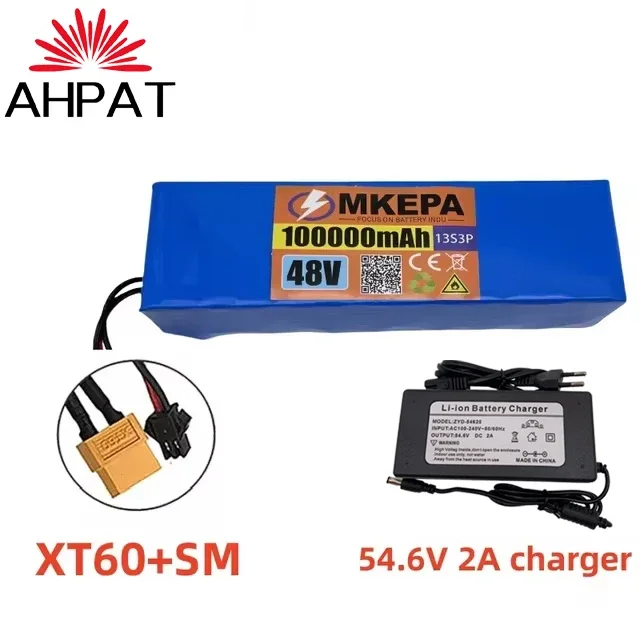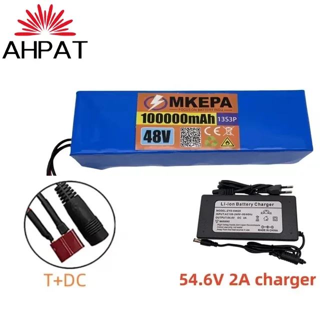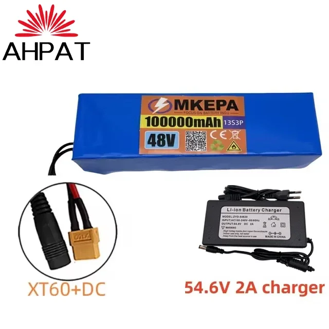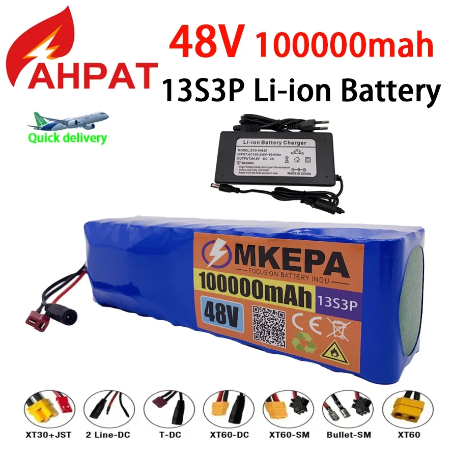 النقل الجوي KEPAH New48V100Ah 1000w 13S3P 48V بطارية ليثيوم أيون 100000 مللي أمبير لـ 54.6 فولت مع BMS + شاحن، AHPAT