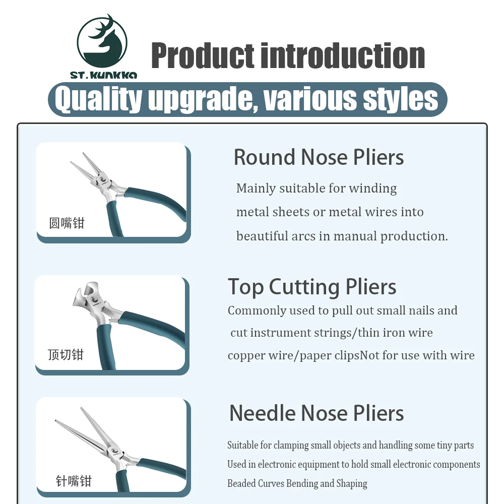 St.kunkka مخصصة عالية الجودة صنع المجوهرات أكوام إبرة مستديرة الأنف قطع الأسلاك كماشة لأدوات إصلاح المجوهرات