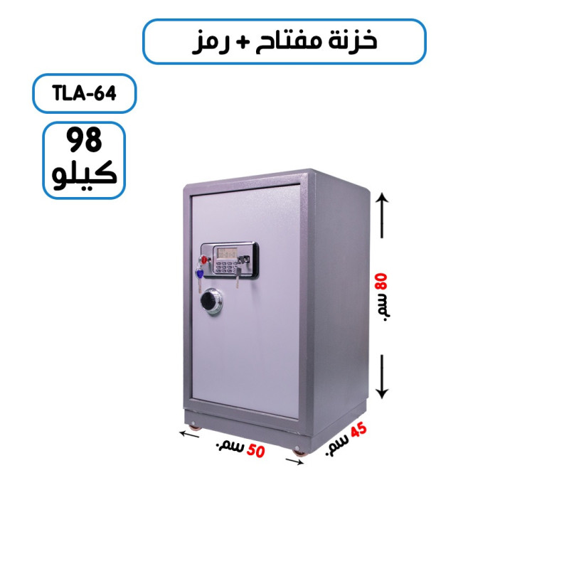 خزنة فولاذ أمنية مقاومة للحرائق مفتاح + رمز رمادي وزن 98 كيلو