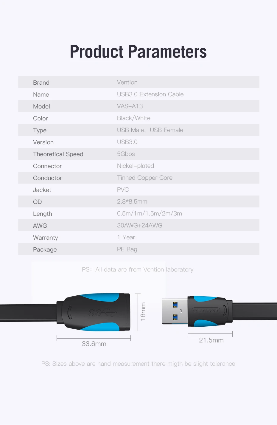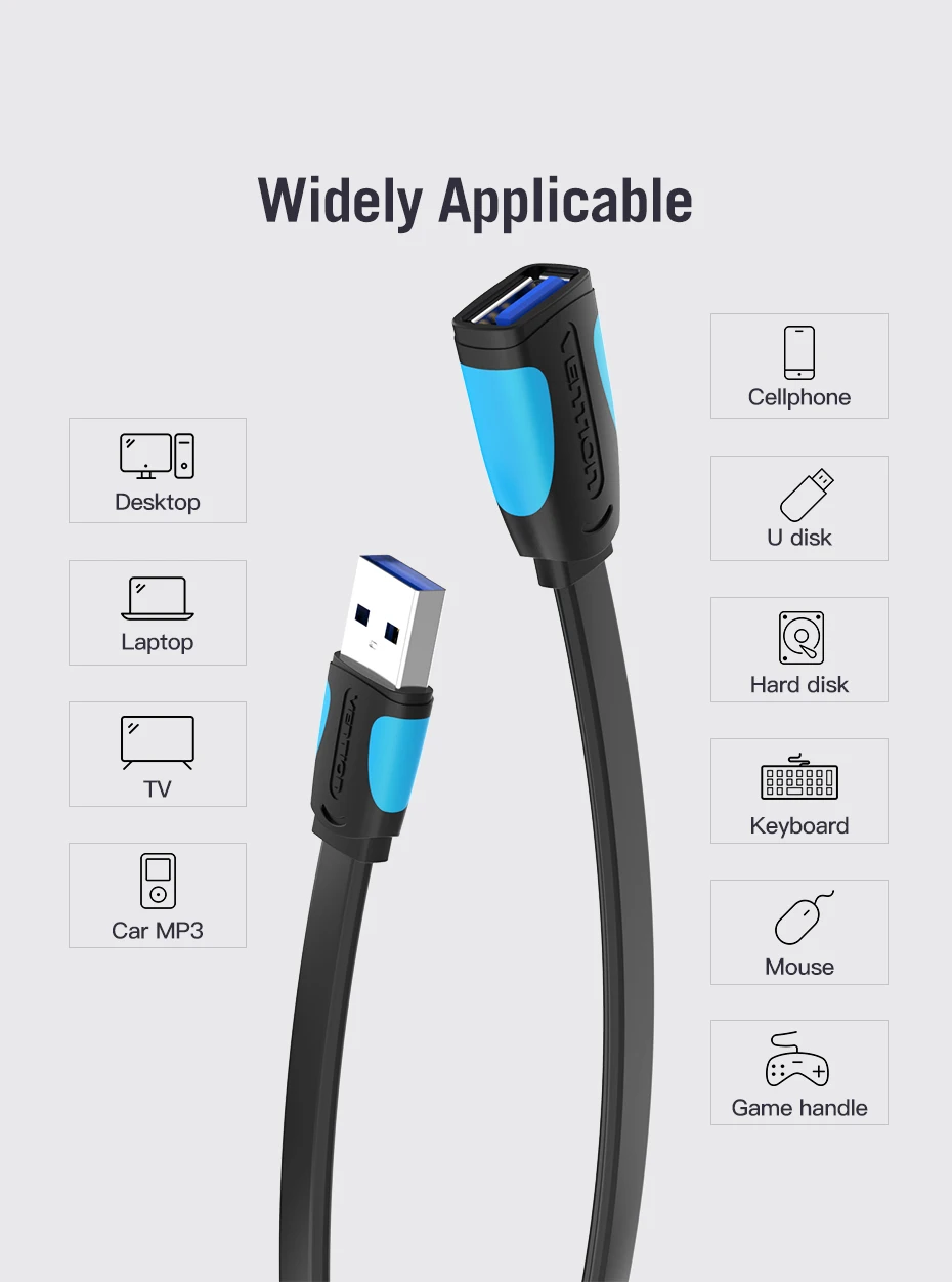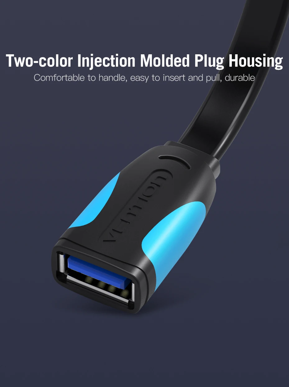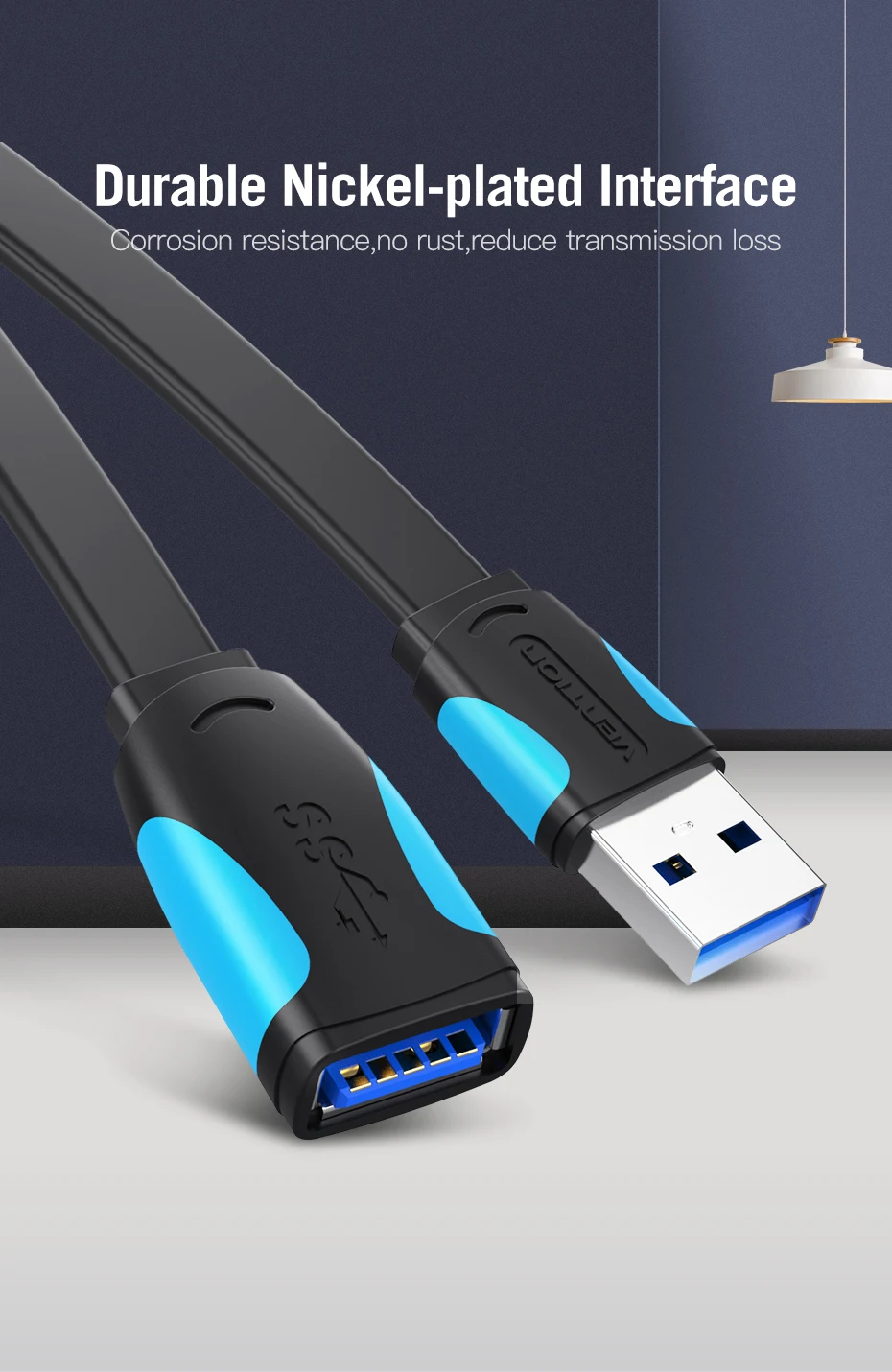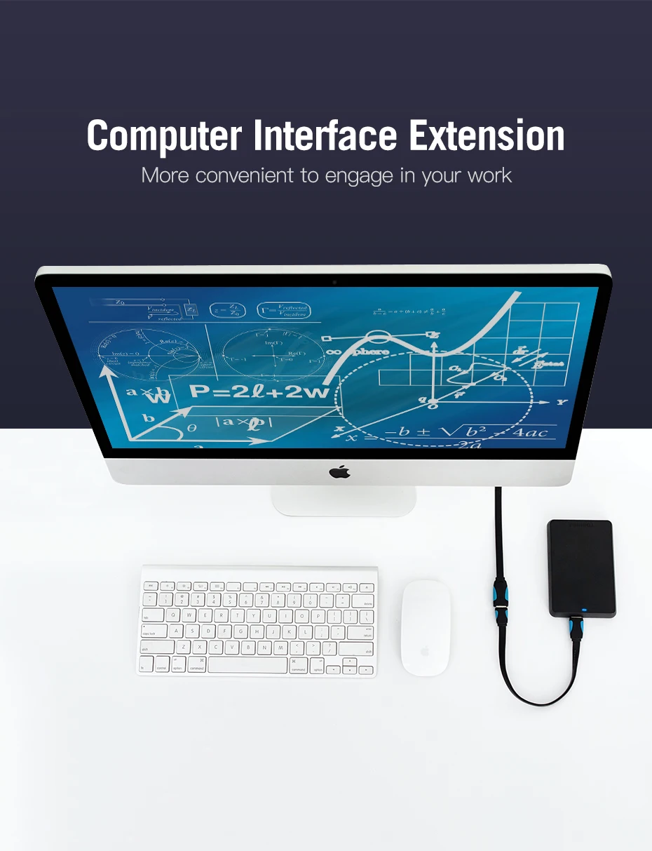 2.USB 3.0 Flat Cable: 5Gbps transfer rate and nickel-plated interface.