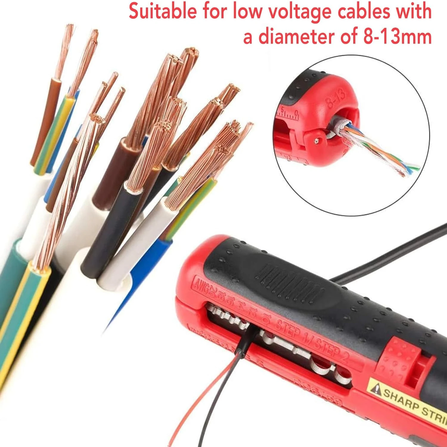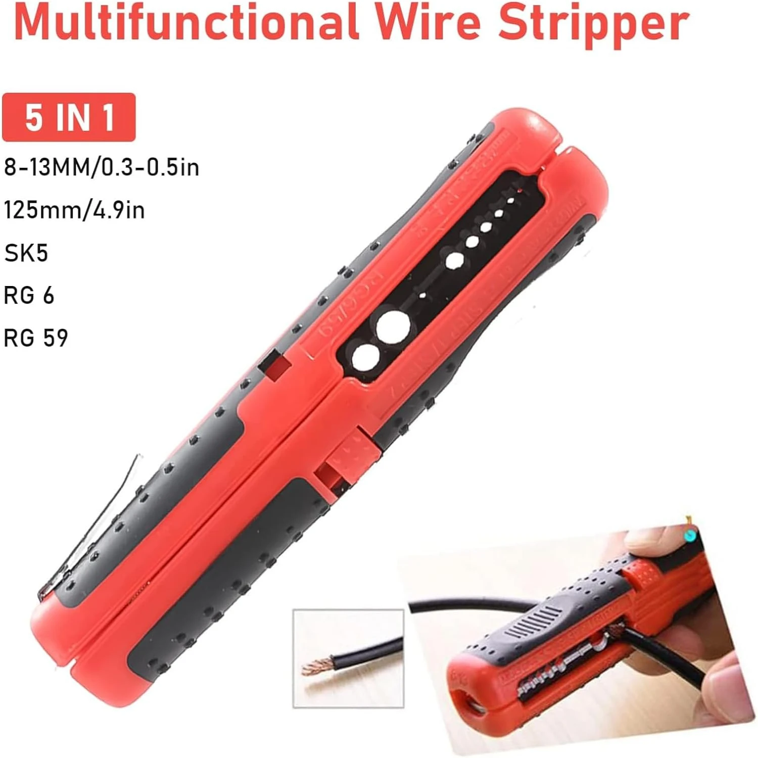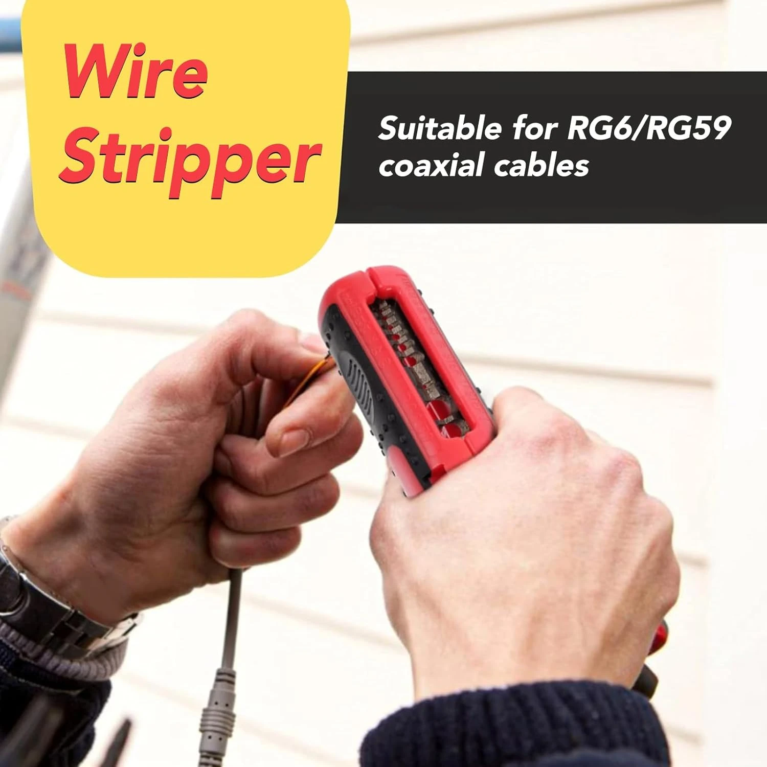 متعددة الوظائف: متجرد الأسلاك هذا مناسب للكابلات المحورية RG6 RG59، للكابلات ذات الجهد المنخفض بقطر من 8 إلى 13 مم.