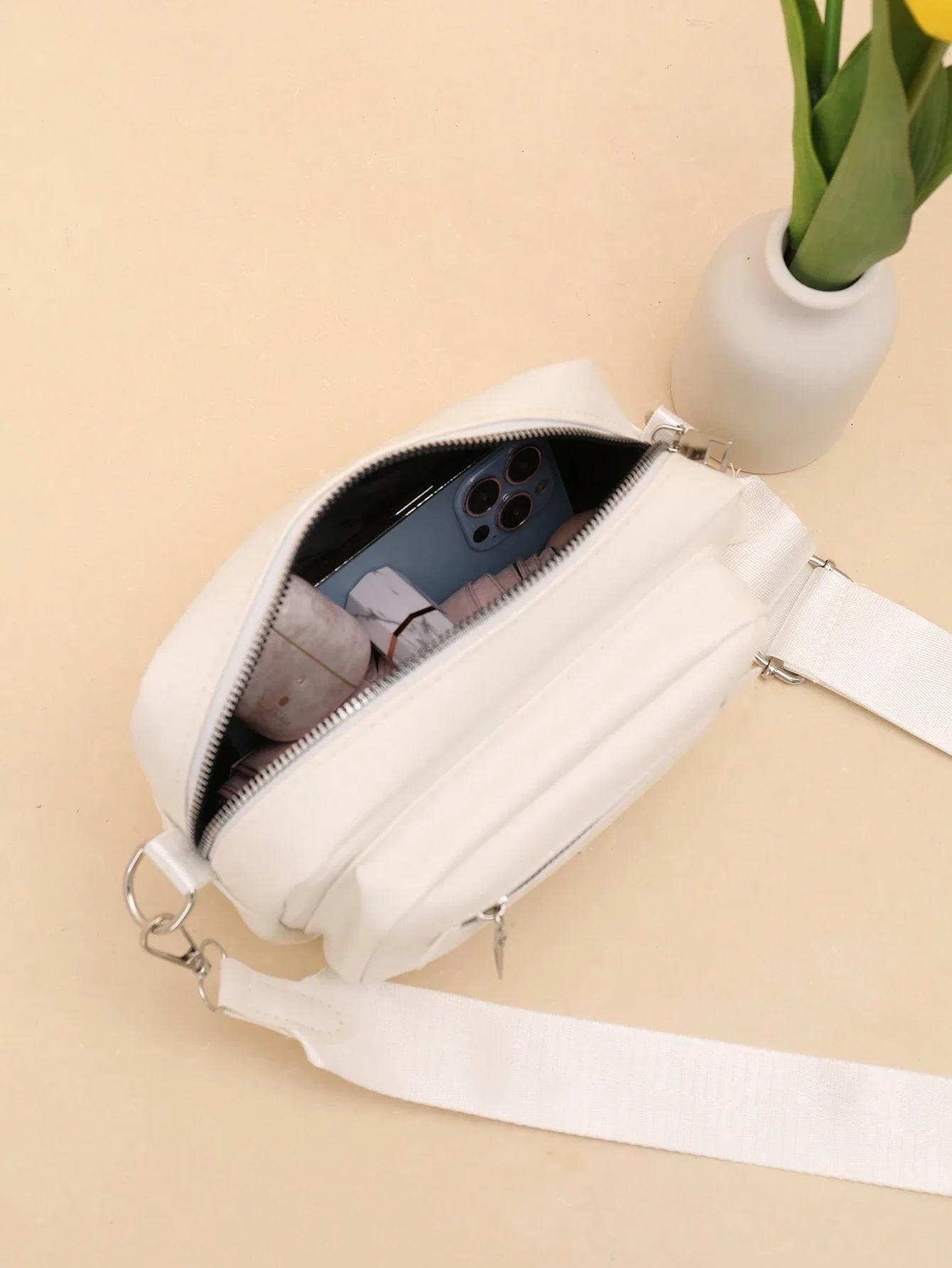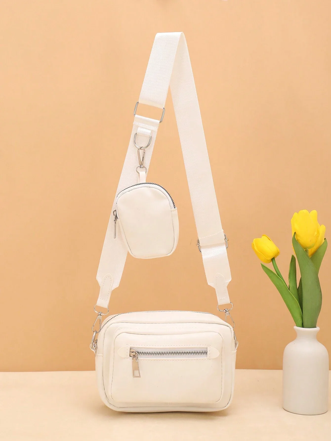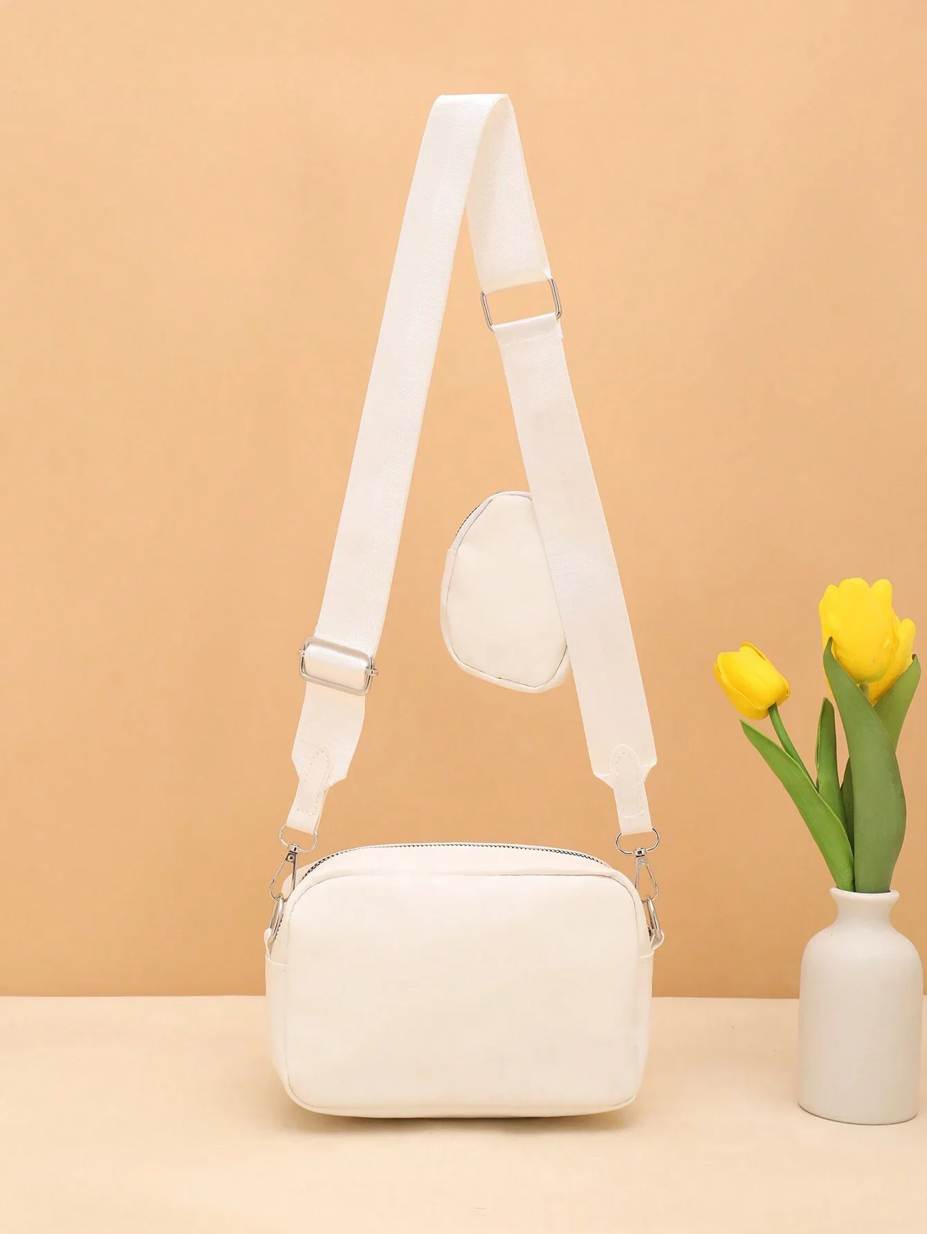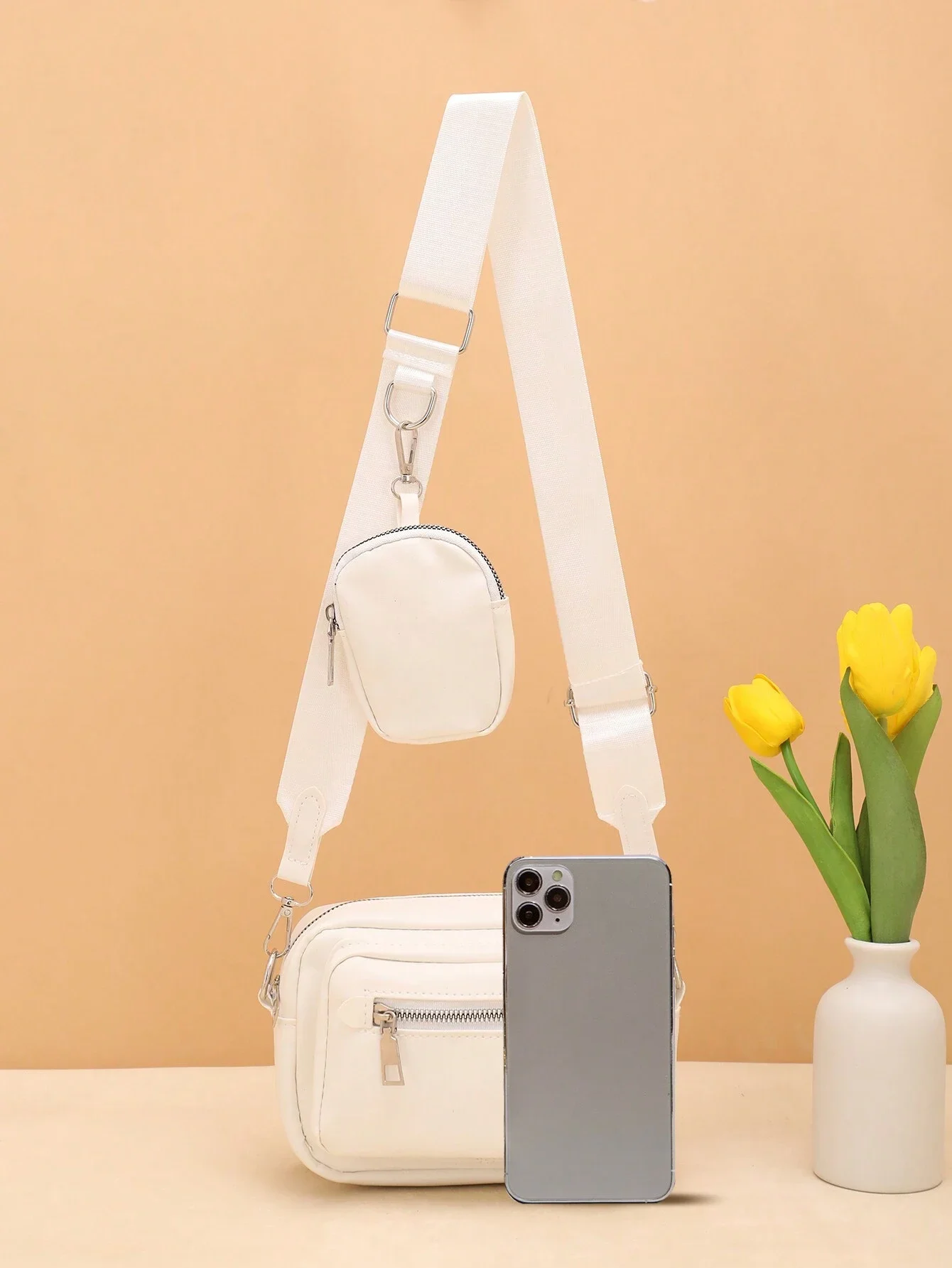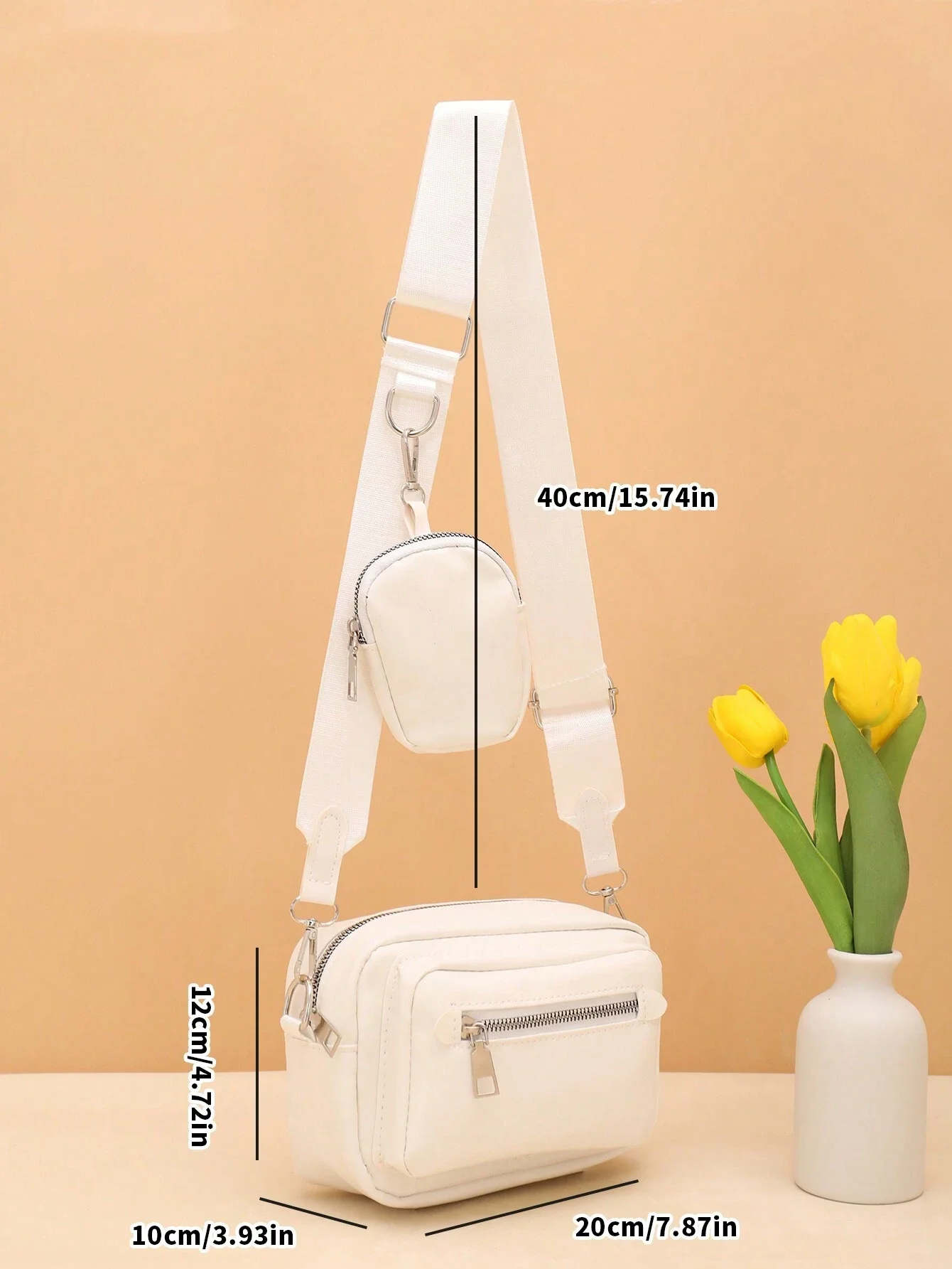 1.حقيبة الكتف البيضاء هذه الأنيقة والعصرية المكونة من قطعتين هي إكسسوار الموضة المثالي لأي امرأة عصرية.مصنوع من جلد البولي يوريثان الناعم عالي الجودة، ويتميز بتصميم كتف مائل أنيق وحزام قابل للتعديل لمزيد من الراحة.