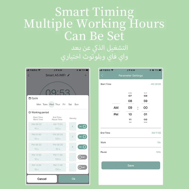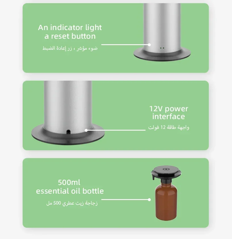 3.التنظيف والصيانة: يرجى استخدام الكحول الطبي لتنظيف زجاجة الزيت العطري، وإضافة كحول بدرجة 75 درجة لجعلها تعمل لمدة 2-4 ساعات، ثم تنظيف خط الأنابيب.حافظ على تدفق الرذاذ.