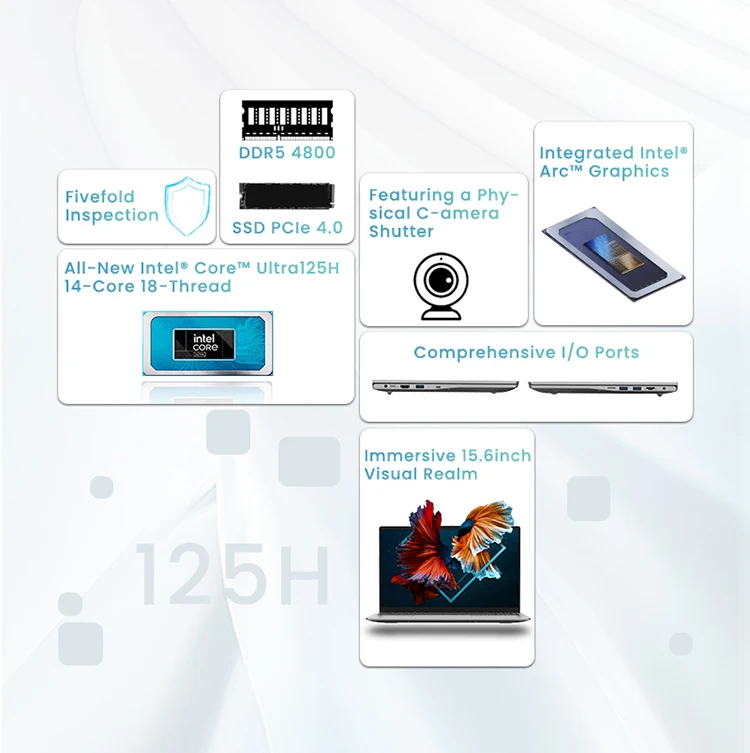 【JX-U】كمبيوتر محمول للألعاب Intel Core Ultra 5 125H/Ultra 7 155H 15.6 بوصة كمبيوتر 1920*1080 5600MHz DDR5 4800 WI-FI 6 BT5.2 كمبيوتر أعمال