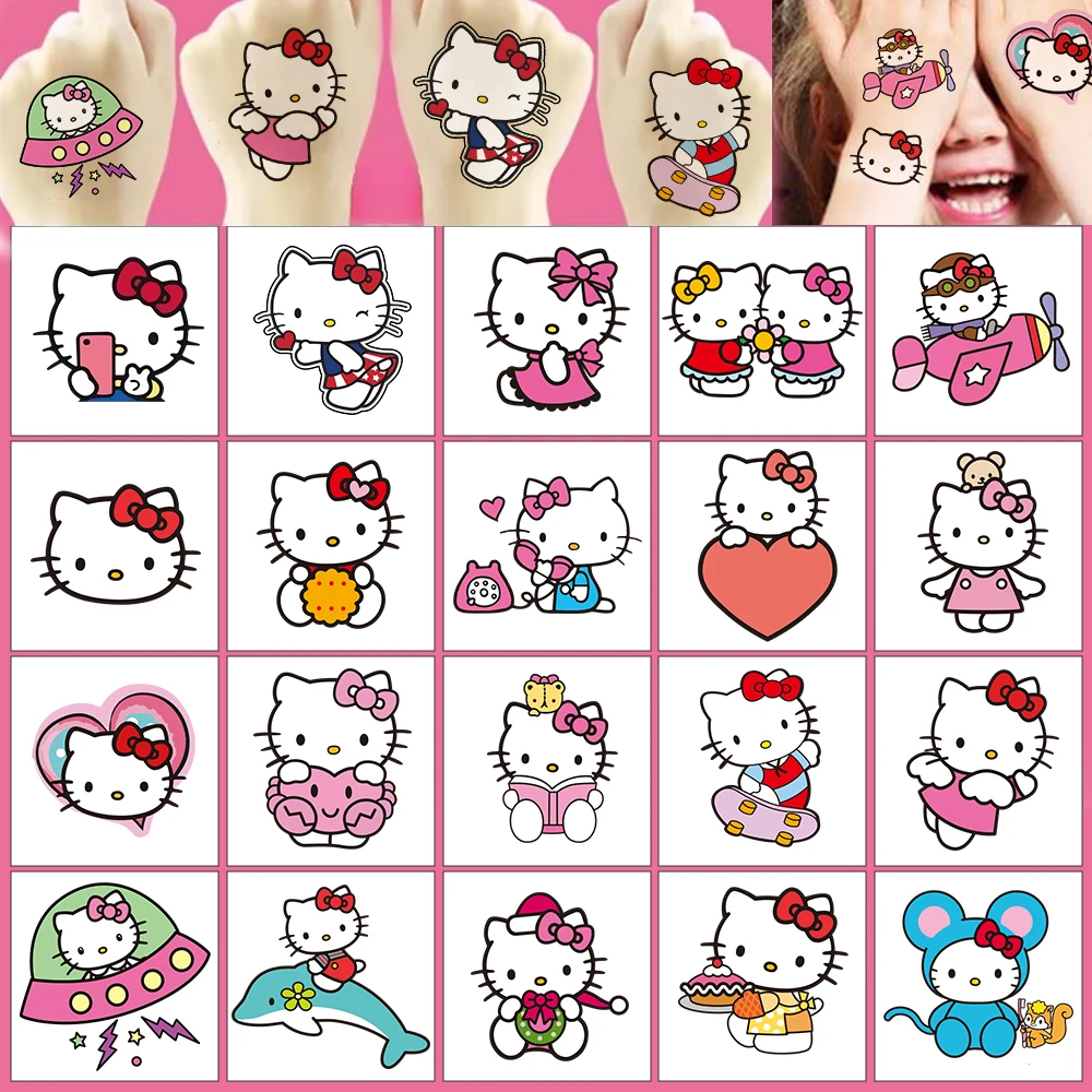 30 قطعة الكرتون مرحبا كيتي المؤقتة الوشم ملصقات لطيف مقاوم للماء كيتي القط وهمية الوشم ملصقات الفتيات Kawaii الجسم الفن المنزلق